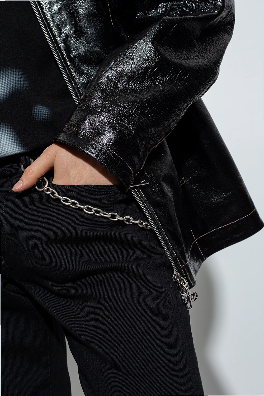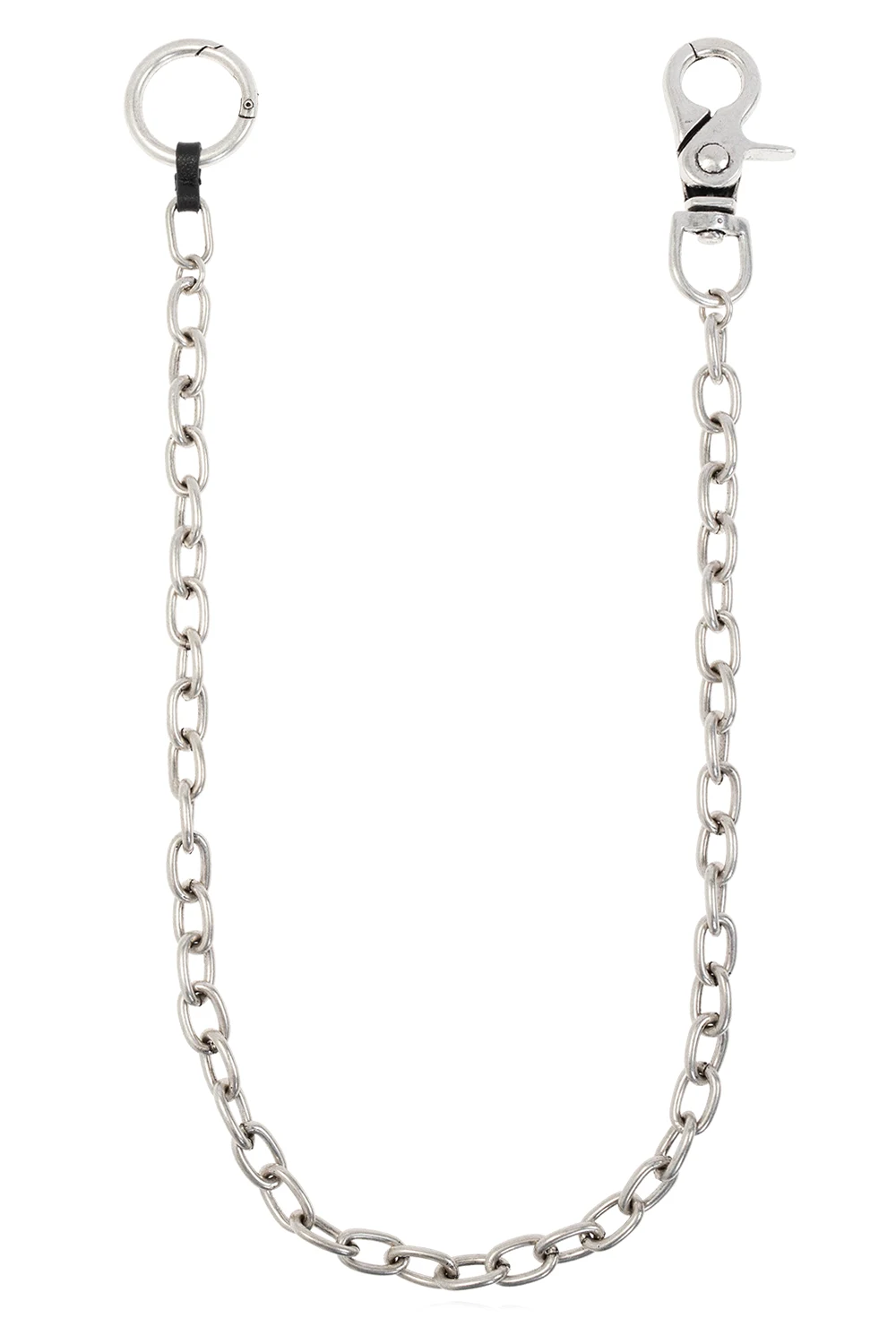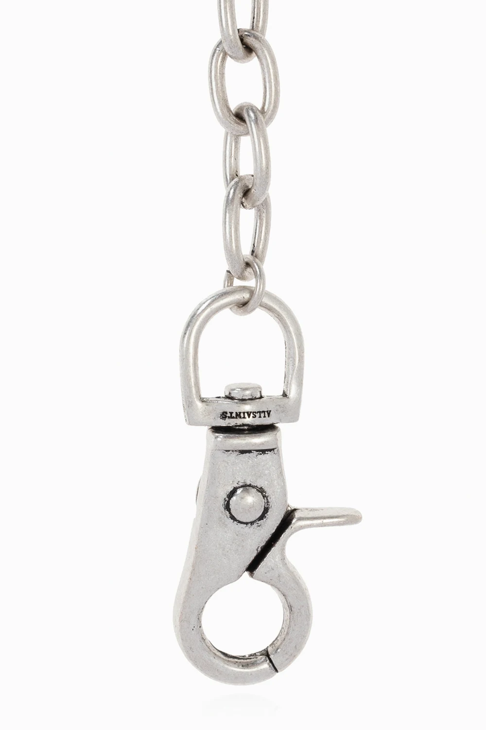 Mosiężny łańcuch do spodni w kolorze srebrnym AllSaints. Zakończony dwoma karabińczykami. Wygrawerowane logo.