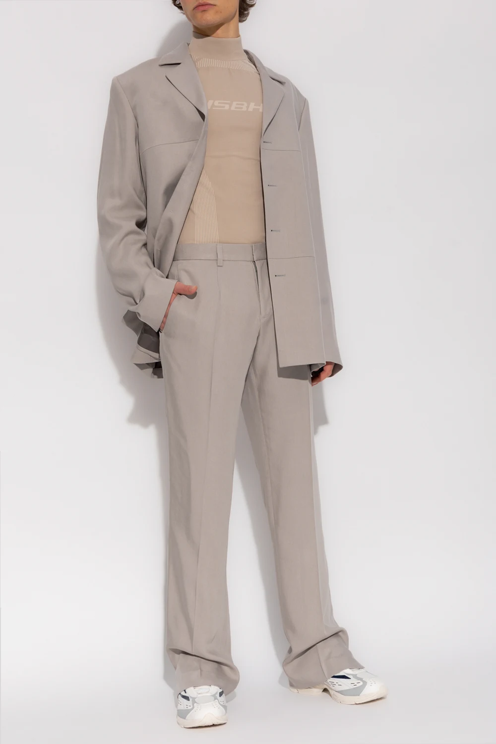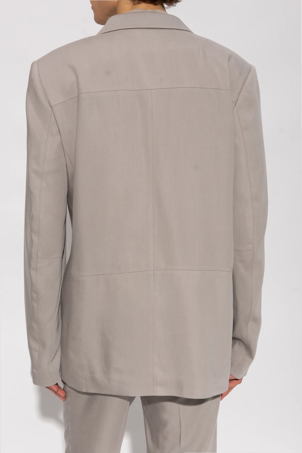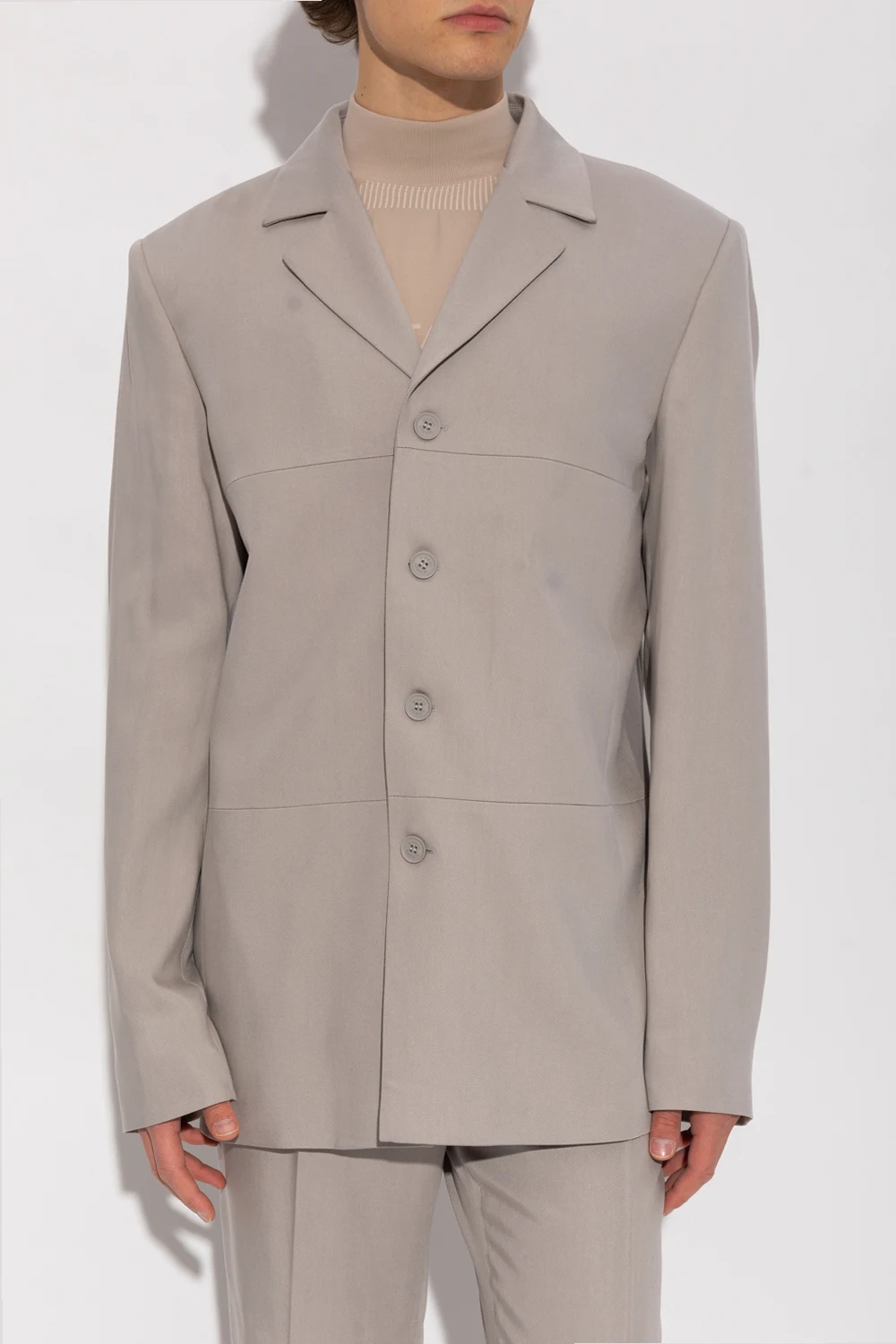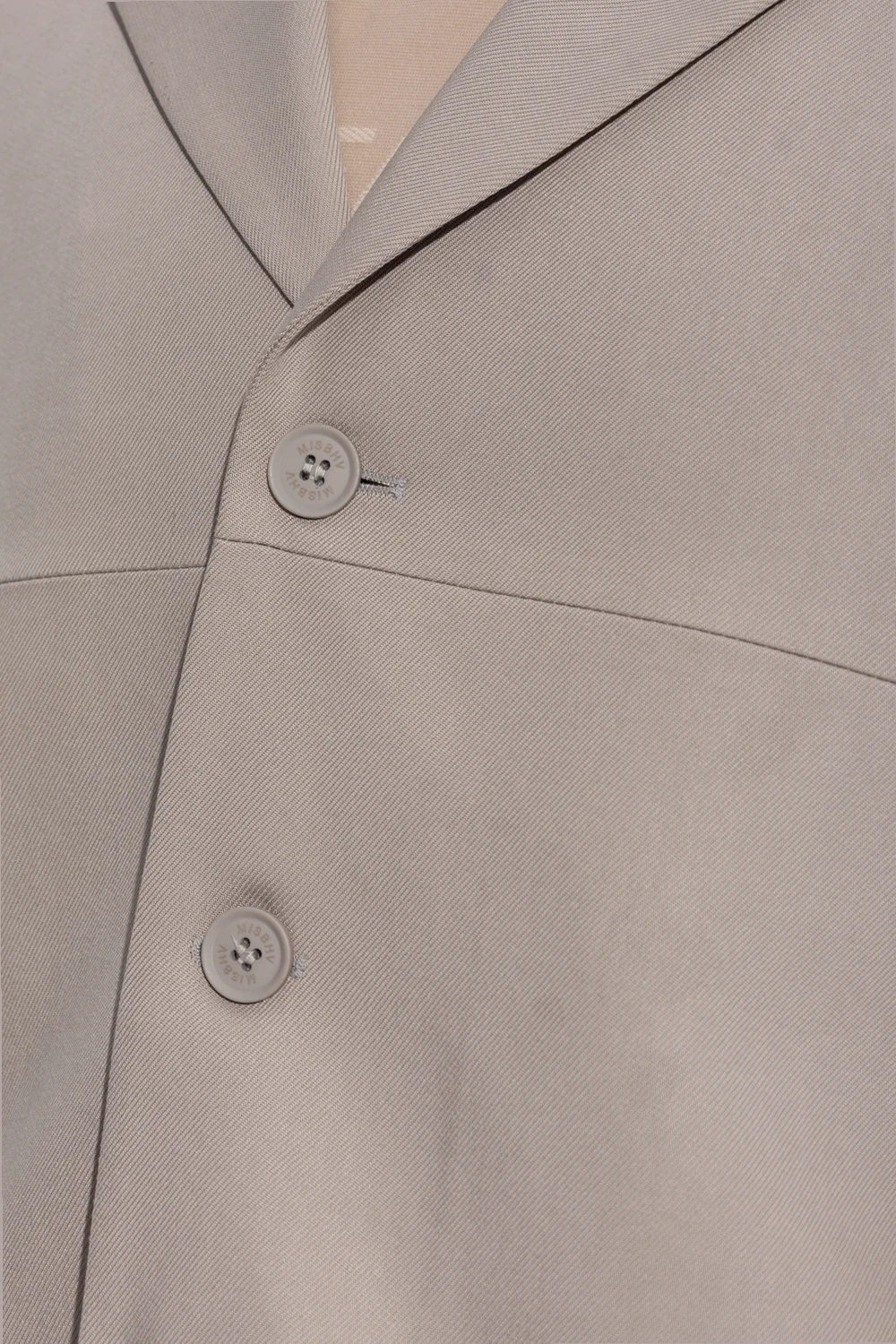 Szara, jednorzędowa marynarka MISBHV, z kolekcji ‘Garden Of Dreams’. Zapinana na guziki. Otwarte klapy. Długie rękawy.