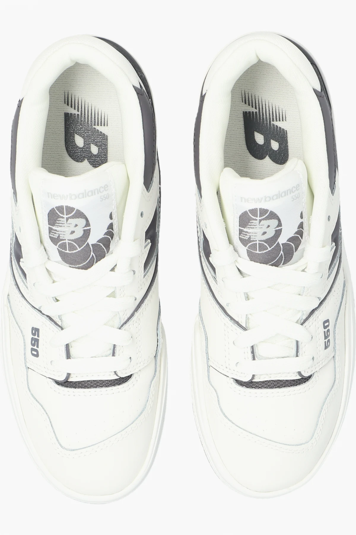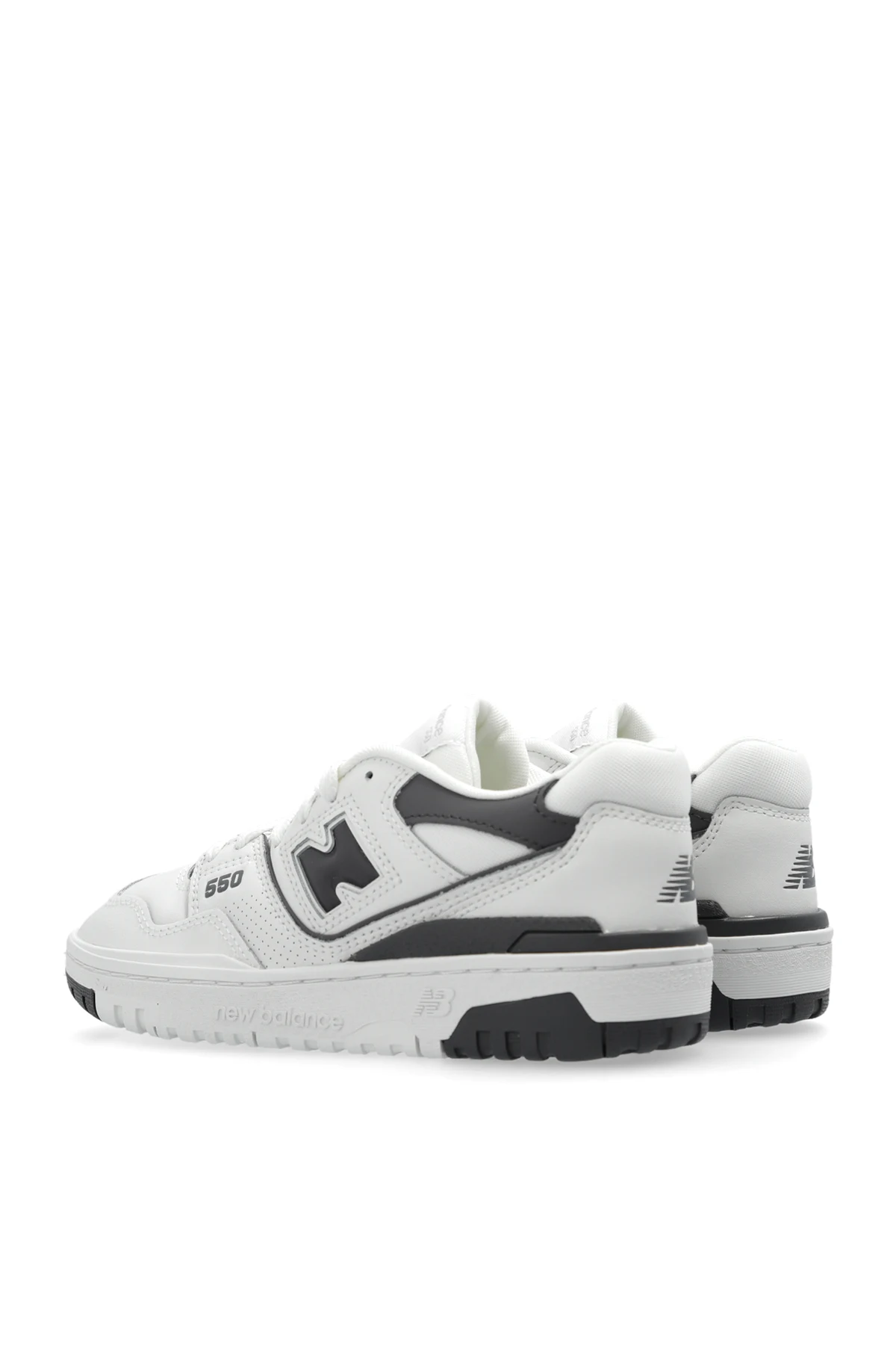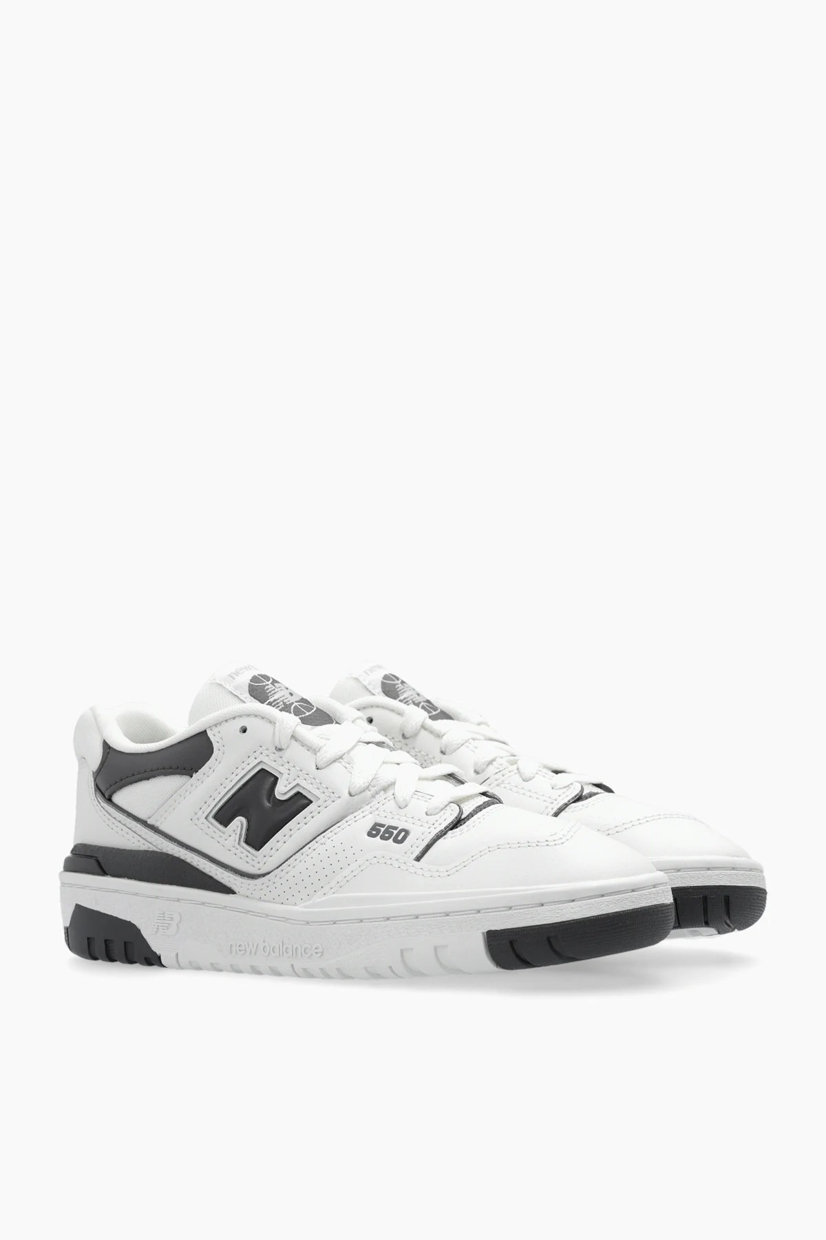 Biało-szare, sznurowane buty sportowe, model ‘GSB550BH’ New Balance. Wykonane ze skóry i materiału. Ozdobione aplikacją z logo oraz oznaczeniem serii modelu. Biała, gumowa podeszwa.