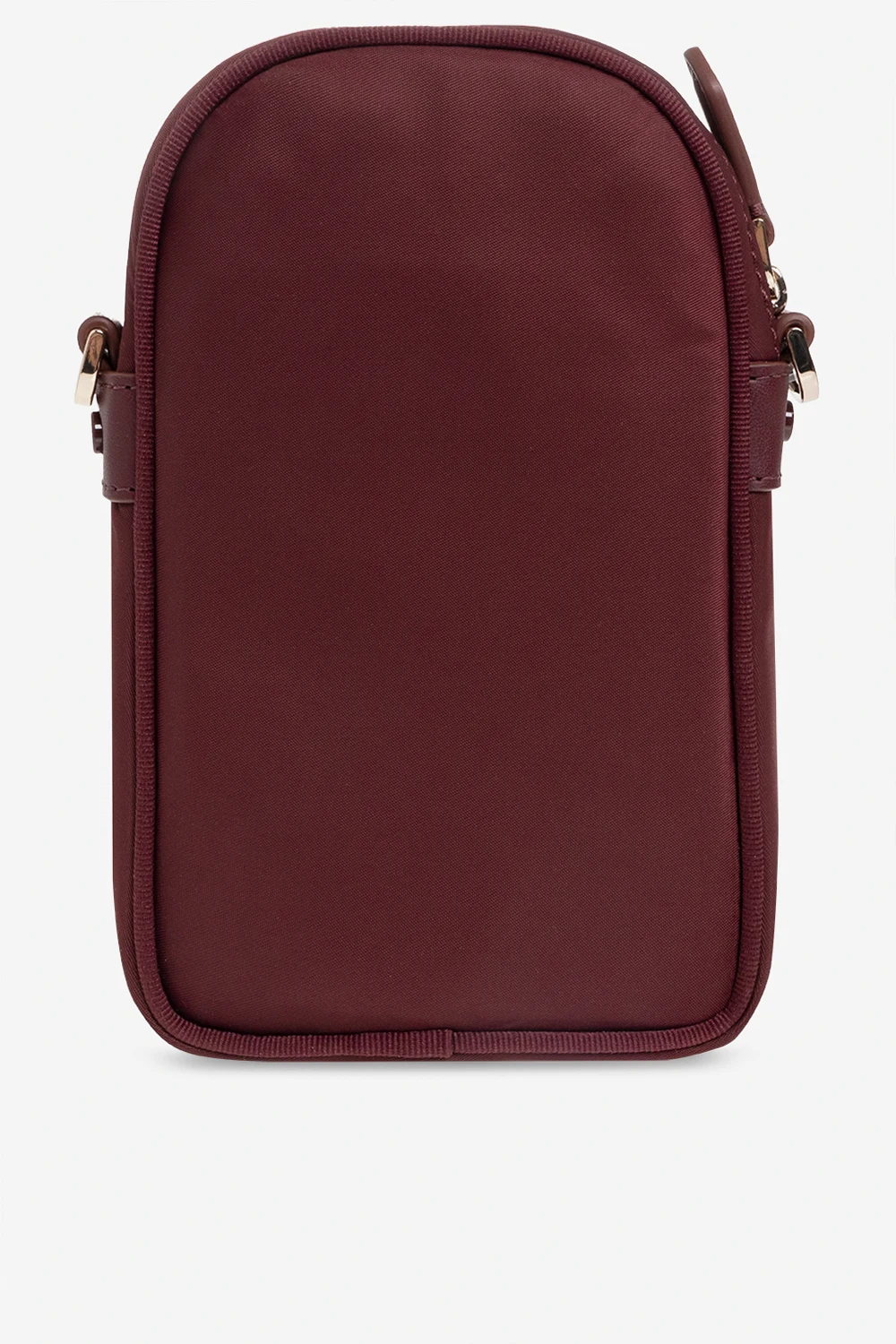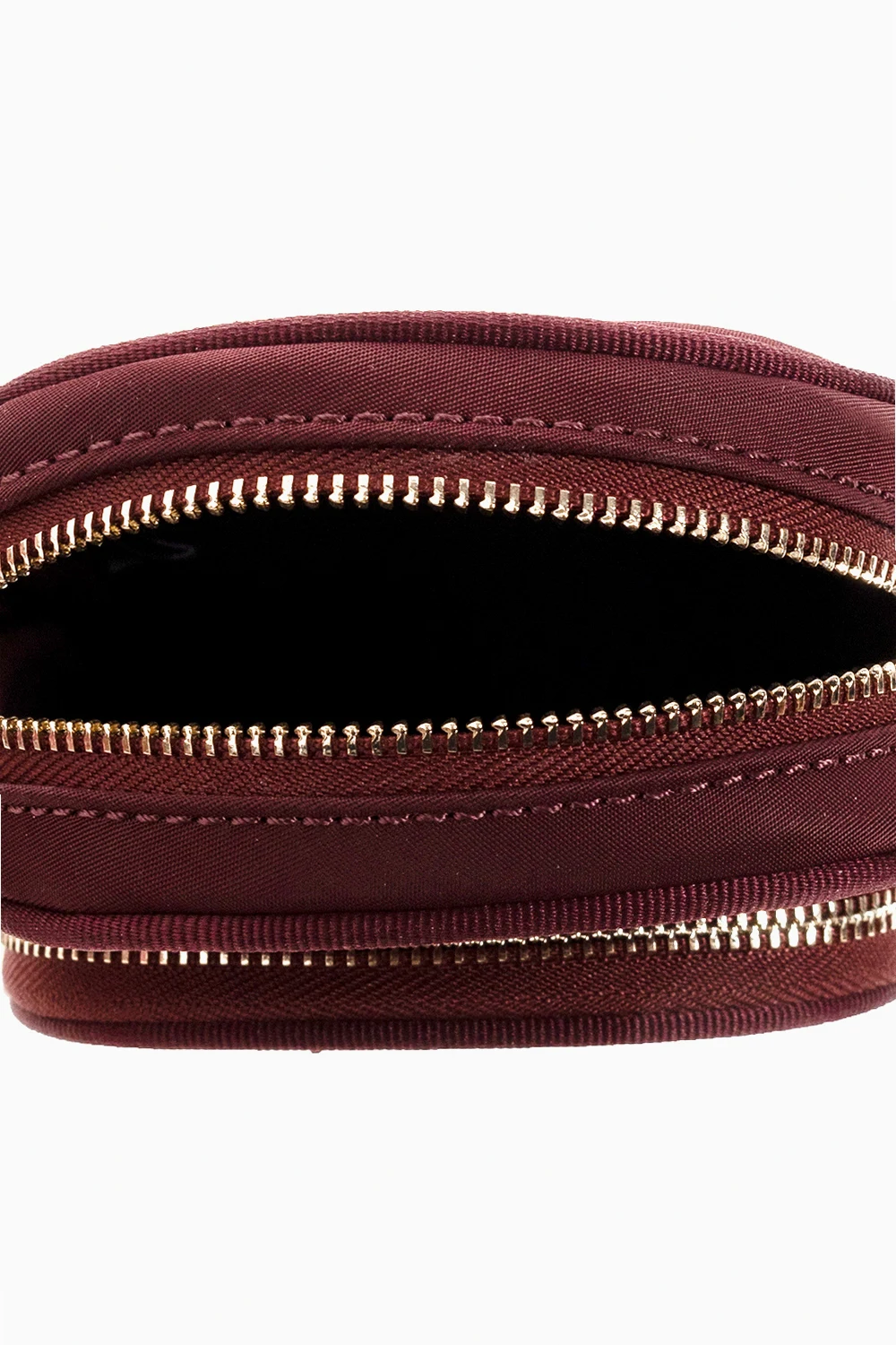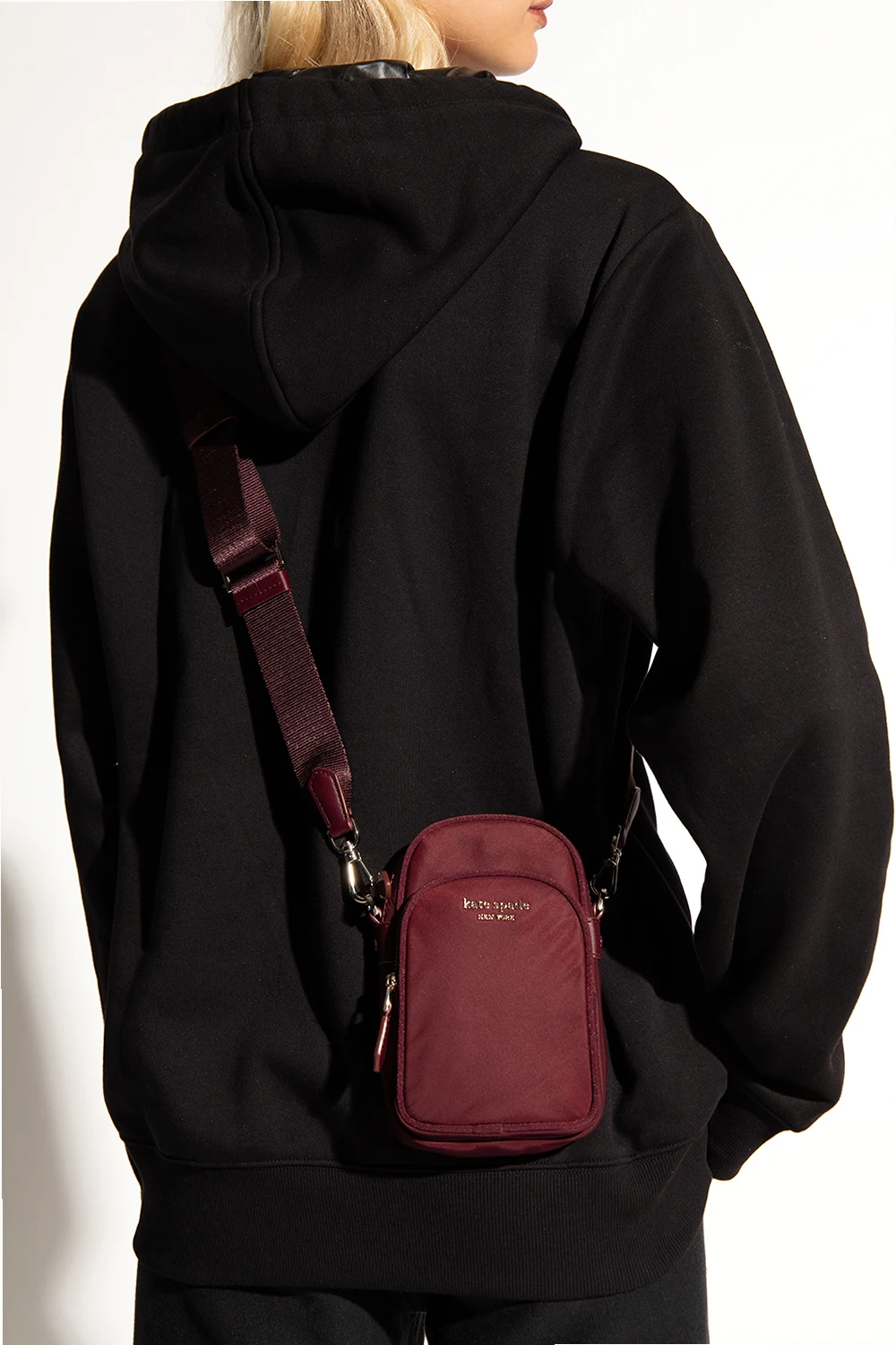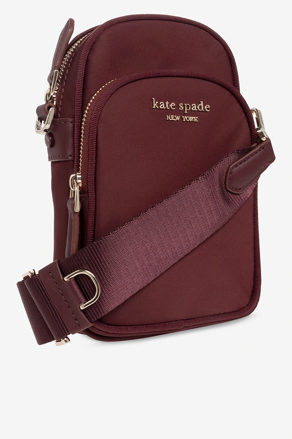 Bordowe etui na telefon, model ‘The Little Better Sam’ Kate Spade. Zamykane na zamek. Z przodu kieszeń zamykana na zamek ozdobiona metalowym logo. Odpinany, regulowany pasek na ramię. Wewnątrz komora i trzy miejsca na karty. Metalowe elementy w kolorze jasnego złota.