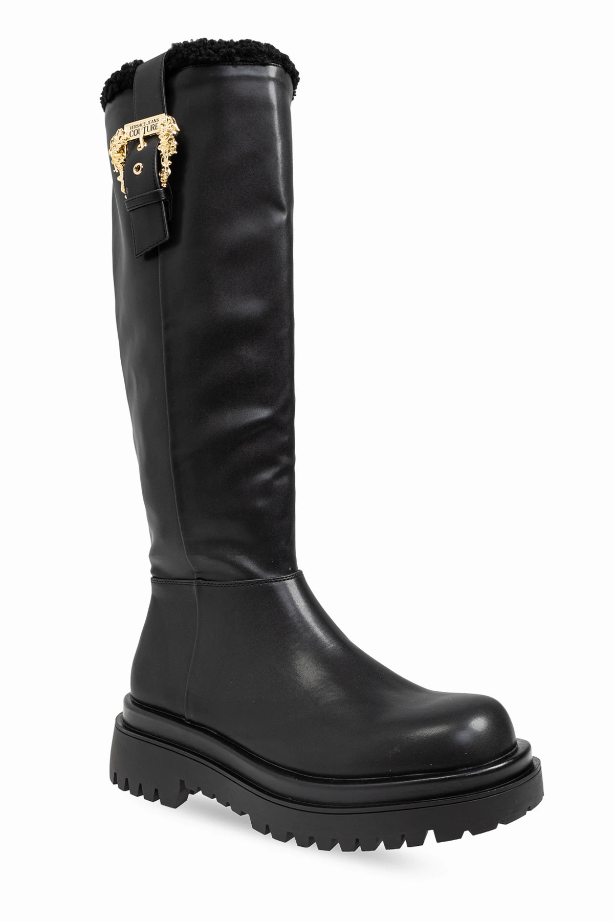 Przedstawiamy kozaki ze sztucznym futrem z ekskluzywnej kolekcji Versace Jeans Couture , które łączą w sobie wyrafinowaną elegancję i funkcjonalność. Dominującym kolorem jest klasyczna czerń, która podkreśla luksusowy charakter obuwia.