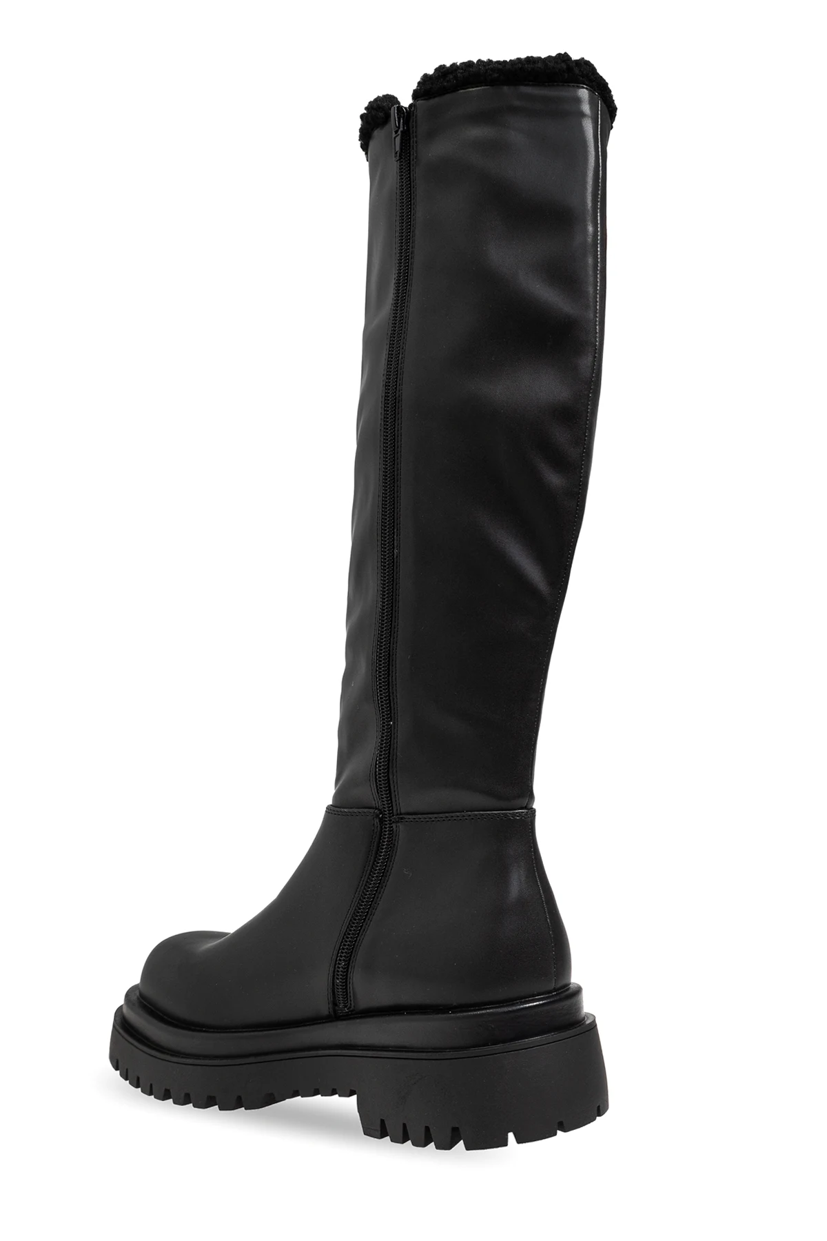Średniej wysokości obcas oraz gruba, solidna podeszwa z wyraźnym bieżnikiem zapewniają doskonałą przyczepność i stabilność, idealne na zimowe warunki. Charakterystyczny złoty detal w postaci ozdoby z motywem lwiego łba na boku buta dodaje prestiżu i wyróżnia ten model spośród innych.