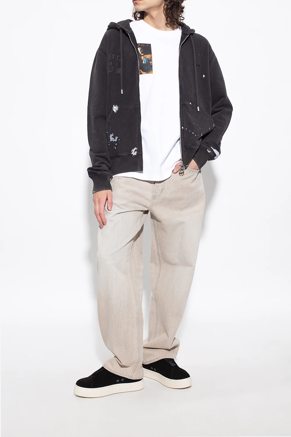 Czarne, wsuwane buty sportowe, model ‘Doja S-O’ Eytys. Wykonane z zamszu. Na języku naszywka z logo. Z tyłu rypsowy pasek w kolorze fioletowym. Kremowa, gumowa podeszwa.