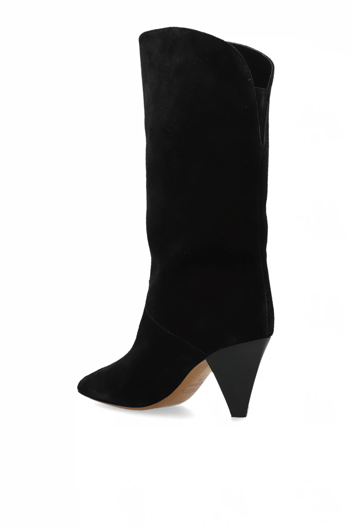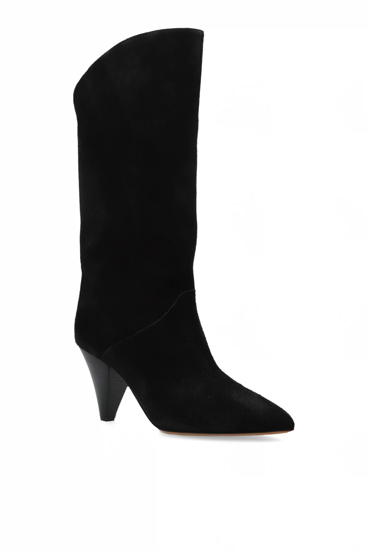 Przedstawiamy kozaki na obcasie "Lirina" z ekskluzywnej kolekcji Isabel Marant, które są kwintesencją francuskiej elegancji i wyrafinowania. Te czarne kozaki zachwycają swoją formą, łączącą luksusowy zamszowy materiał z eleganckim, stożkowym obcasem, co czyni je idealnym wyborem na formalne okazje.
