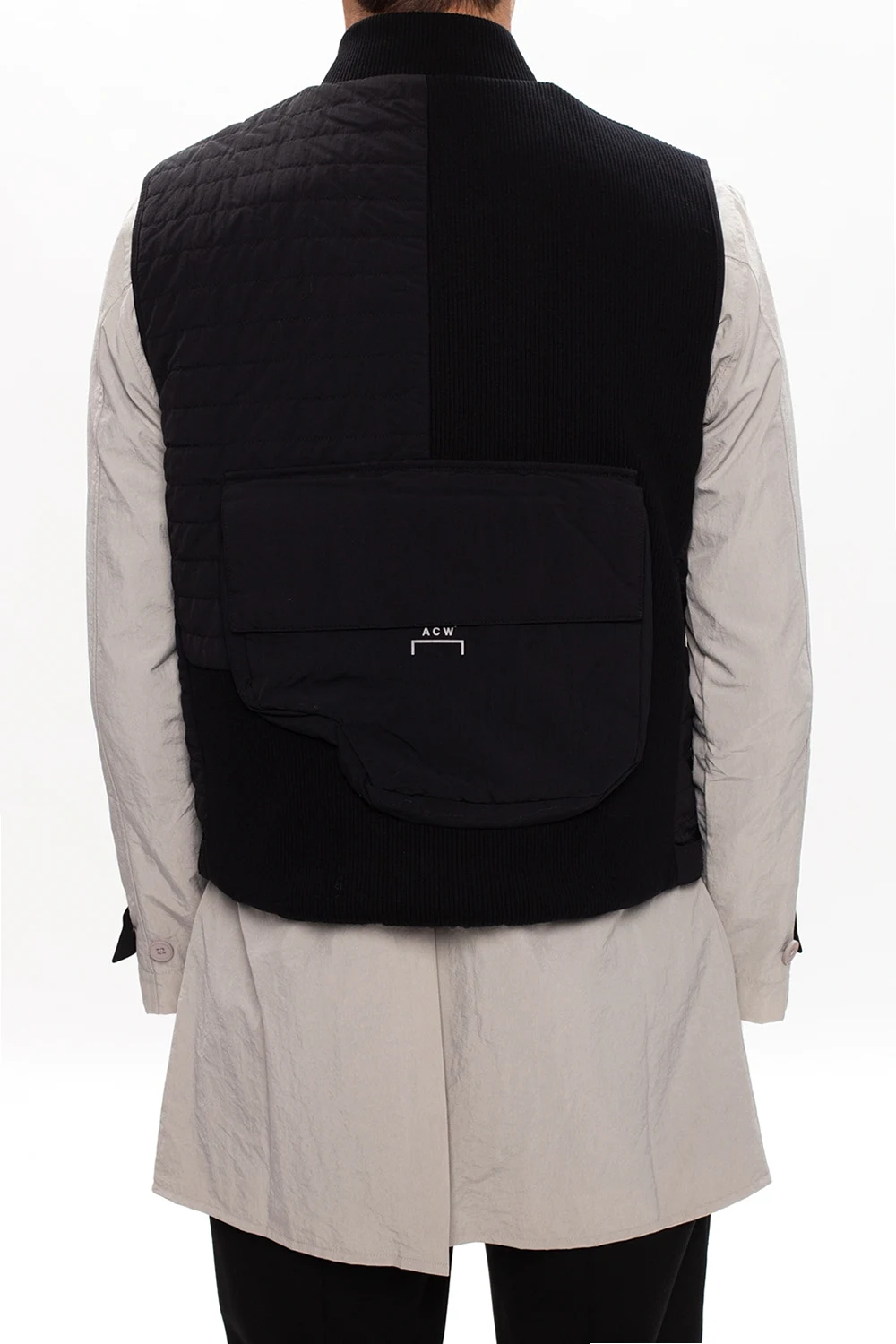 Czarna kamizelka A Cold Wall. Zapinana na zamek i zatrzask. Ozdobiona nadrukowanym logo w kolorze szarym. Z przodu dwie kieszenie zamykane na zamek. Z tyłu kieszeń zamykana na zatrzaski.