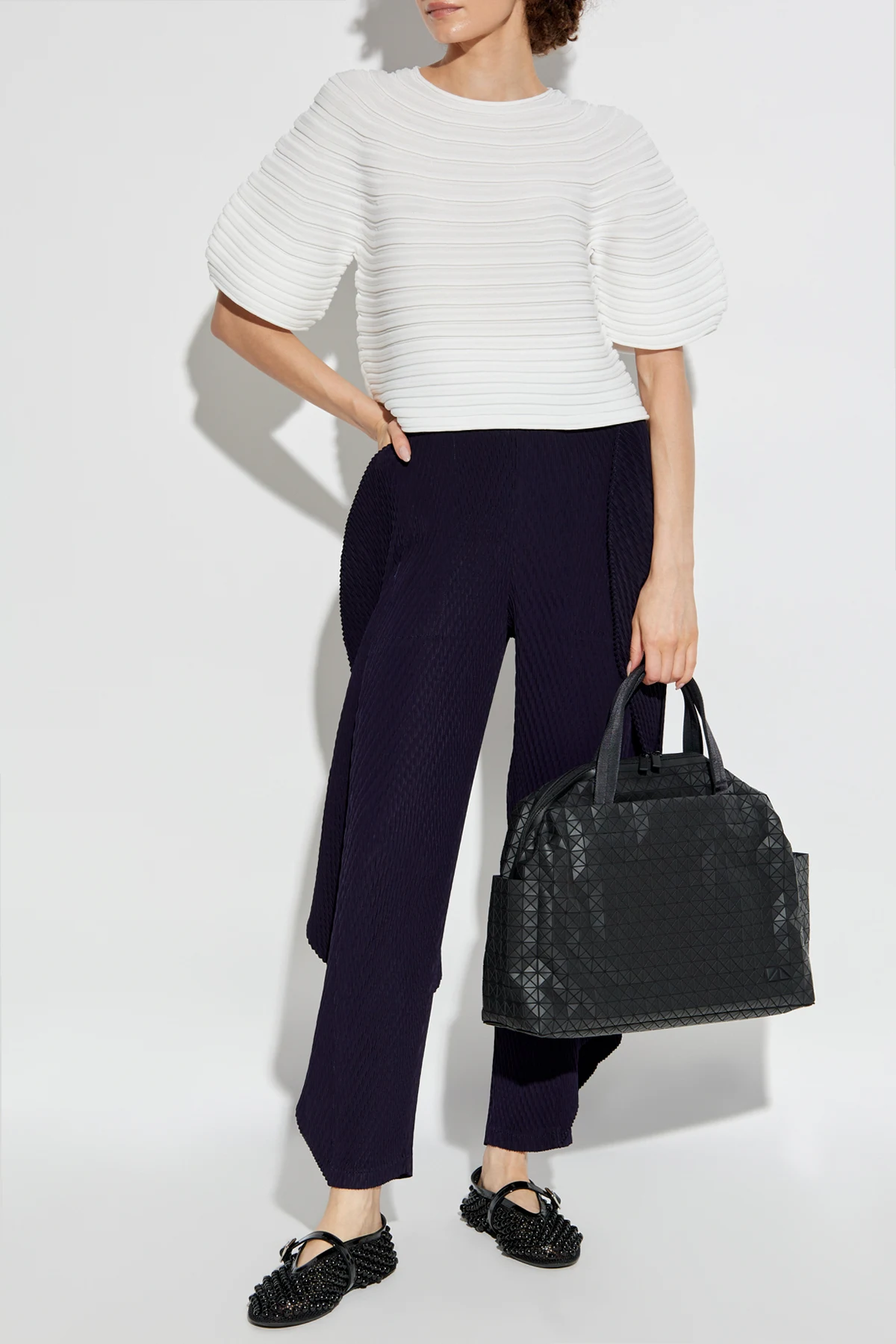 Prezentujemy plisowany top z ekskluzywnej kolekcji renomowanego japońskiego projektanta Pleats Please Issey Miyake . To wyrafinowane dzieło sztuki odzieżowej oddaje hołd tradycyjnemu japońskiemu rzemiosłu w połączeniu z nowoczesnymi technikami krawieckimi.