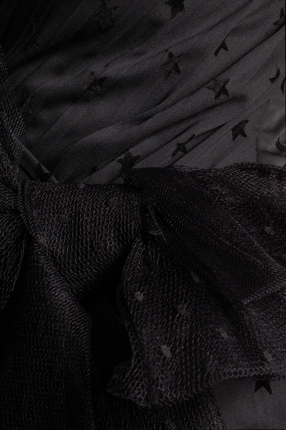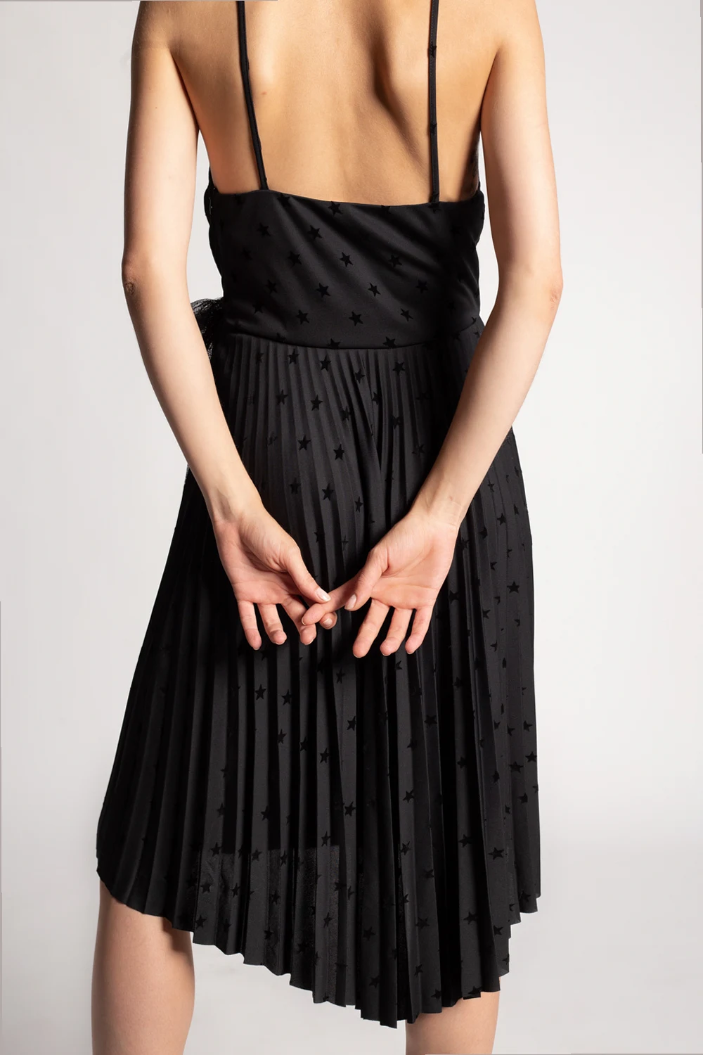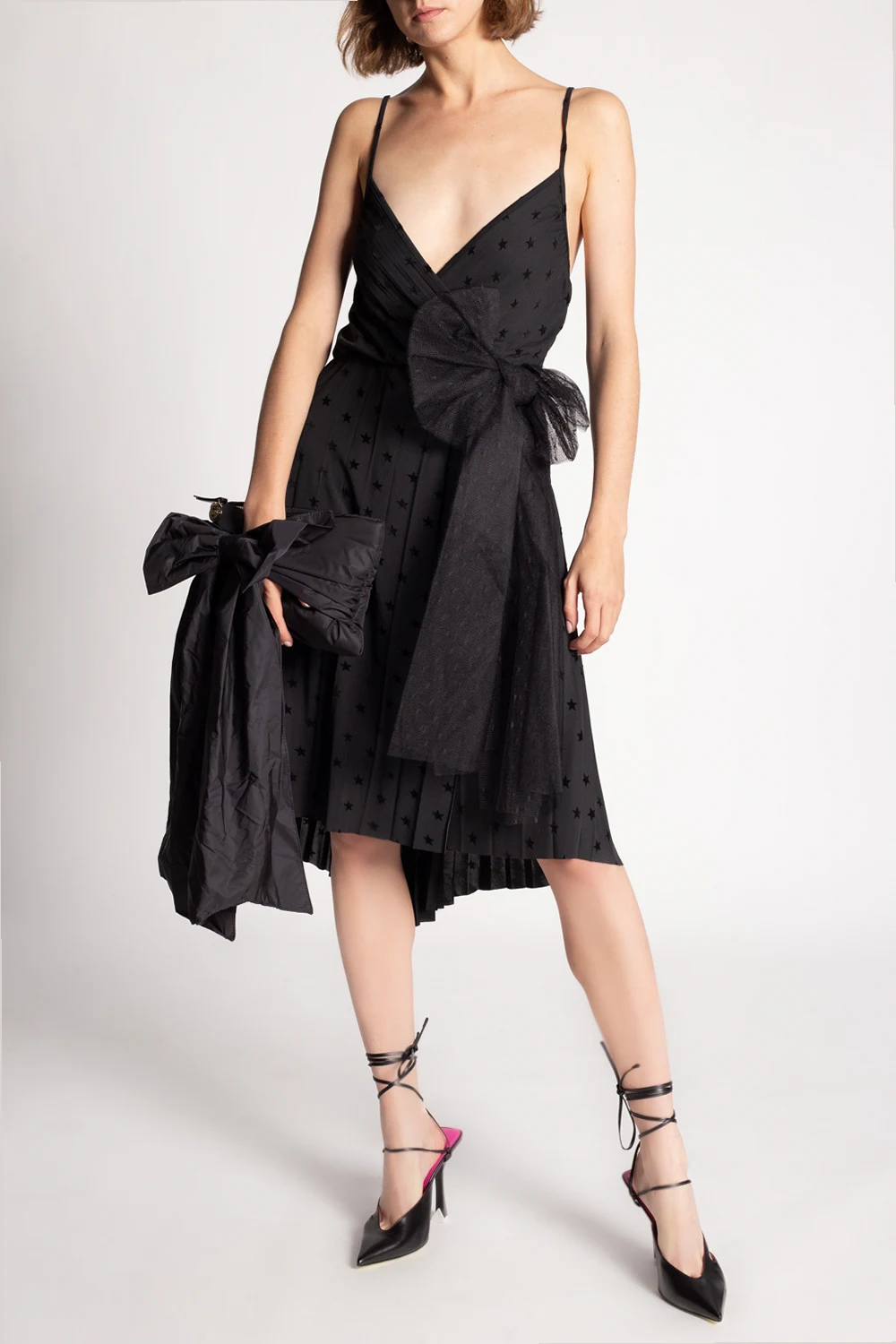 Czarna sukienka na ramiączka Red Valentino. Ozdobiona wzorem w gwiazdy. Z boku zapinana na zamek. Z przodu dekoracyjna kokarda wykonana z tiulu.