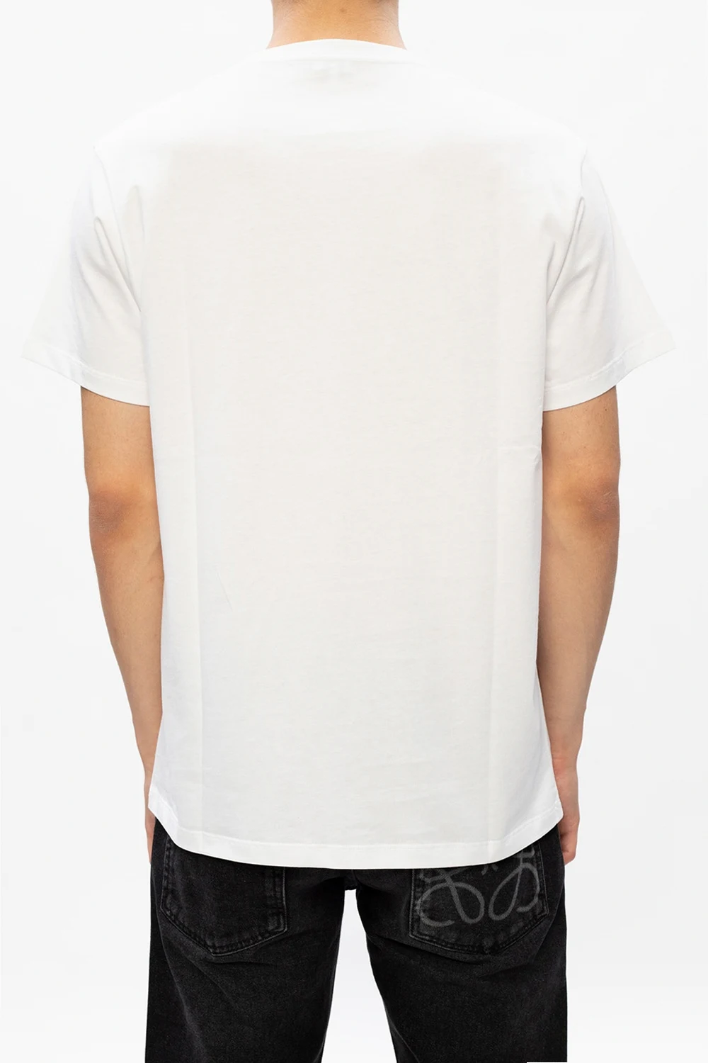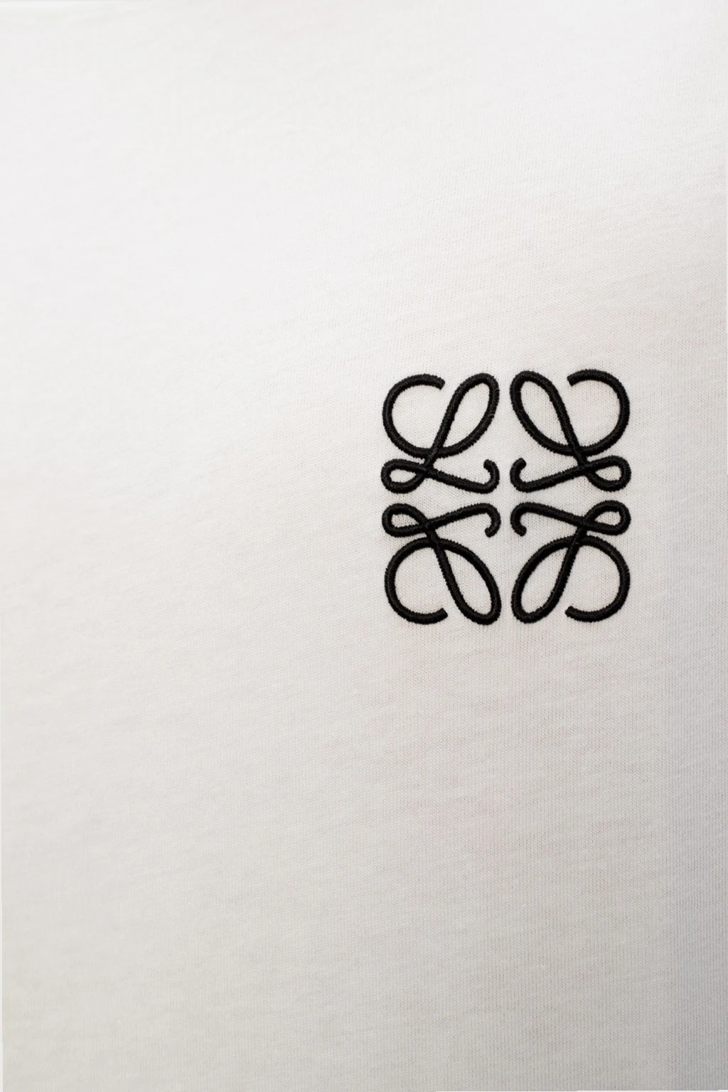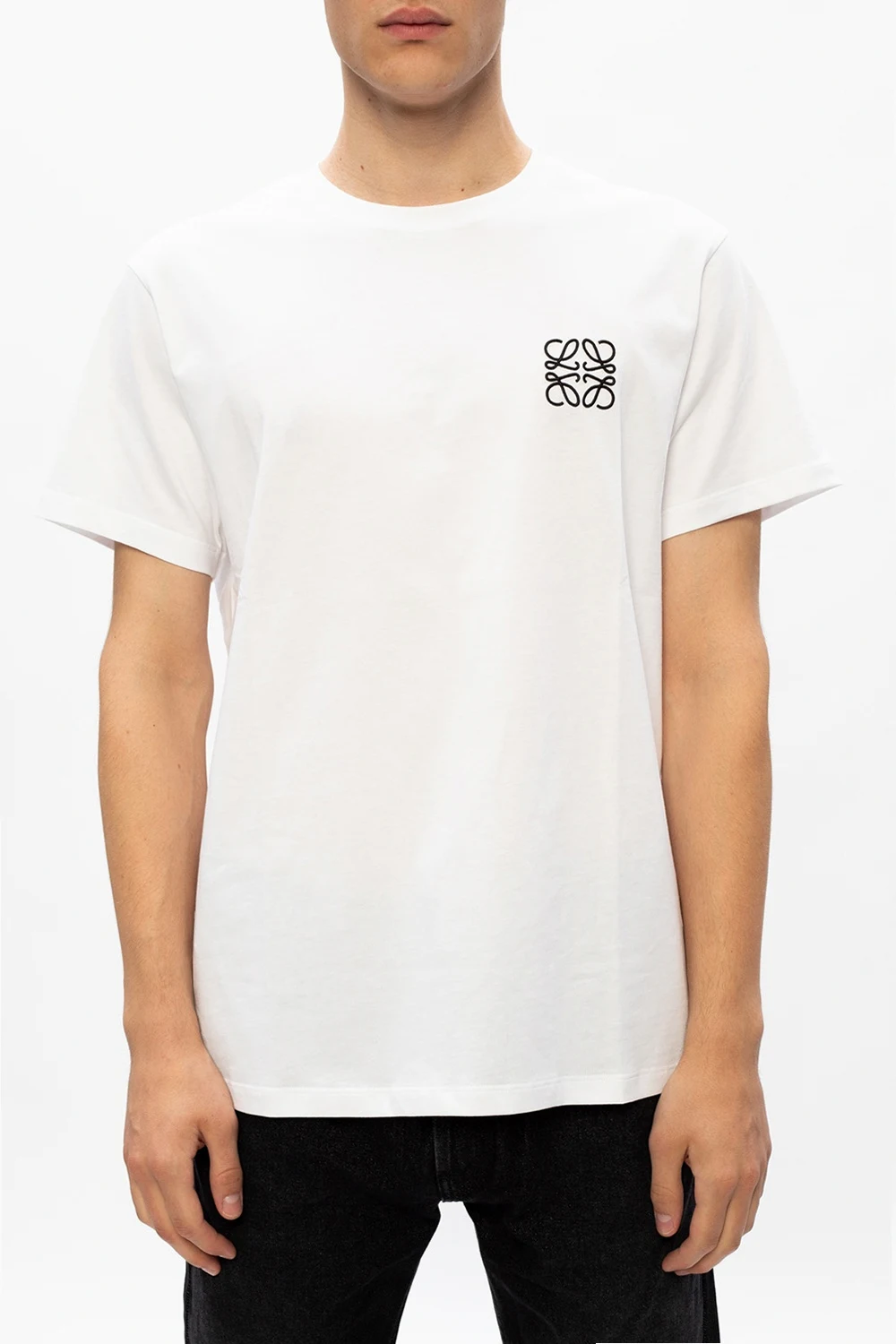 Biały, bawełniany t-shirt Loewe. Ozdobiony wyszytym logo w kolorze czarnym. Okrągły dekolt. Krótkie rękawy.
