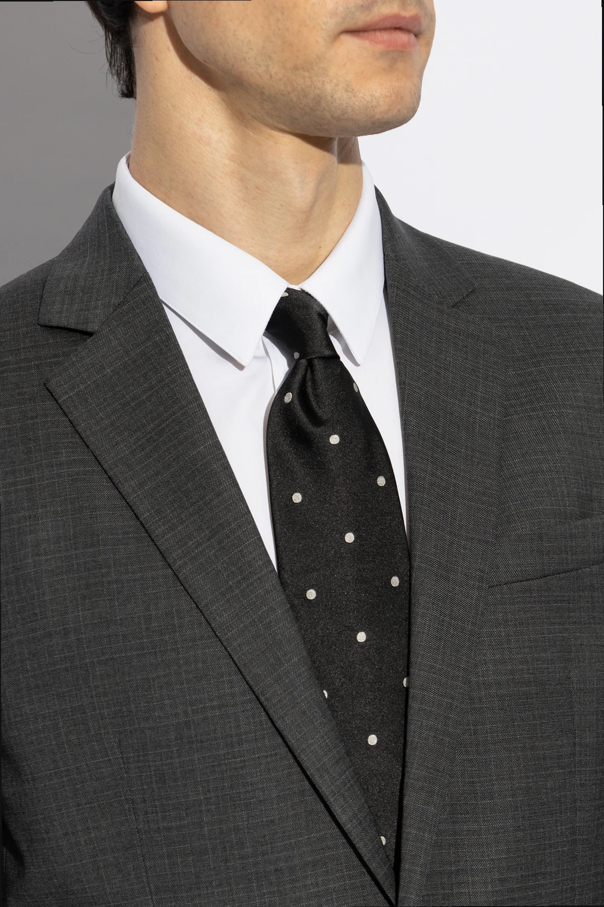 Na zdjęciach, krawat został zawiązany z dbałością o detale i prezentowany w zestawieniu z wyszukanym garniturem, co podkreśla jego wyrafinowany charakter.