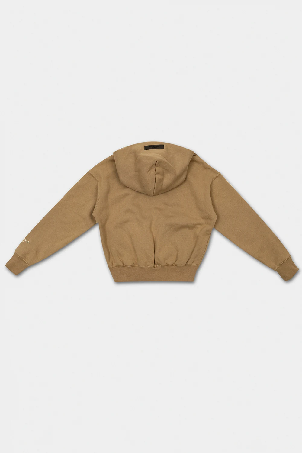 Beżowa bluza z kapturem Fear Of God Essentials Kids. Wykonana z bawełny. Z przodu oraz na rękawie ozdobiona kremowym logo o aksamitnym wykończeniu. Na kapturze gumowa naszywka z logo w kolorze czarnym. Wsuwana kieszeń. Dół i długie rękawy zakończone ściągaczami.