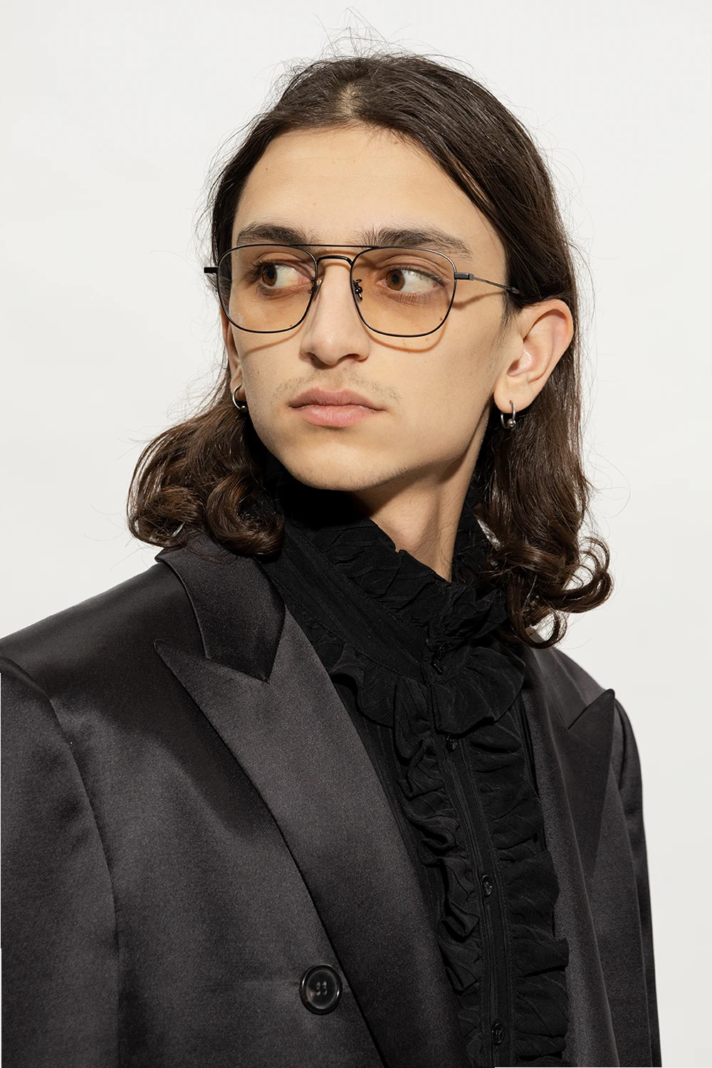 Czarne okulary korekcyjne, model ‘SL 309 SUN’ Saint Laurent. Oprawki typu ‘aviator’. Fotochromowe szkła z redukcją niebieskiego światła. Dołączone etui.