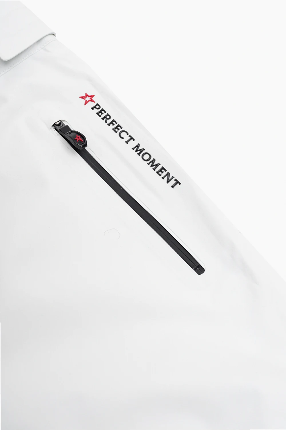 Białe spodnie narciarskie, model ‘Chamonix’ Perfect Moment Kids. Wykonane z szybkoschnącego, wodoodpornego materiału Toray Dermizax™ oraz polarowej podszewki termicznej. Wypełnienie PrimaLoft® — innowacyjne włókno poliestrowe z recyklingu. Zapinane na guziki oraz kryty zamek. Cztery kieszenie zamykane na kryty zamek. Rozszerzane nogawki z wewnętrznym mankietem ściąganym gumką oraz z krótkim zamkiem. Odpinany pas ze ściągaczem, zapinany na guziki.