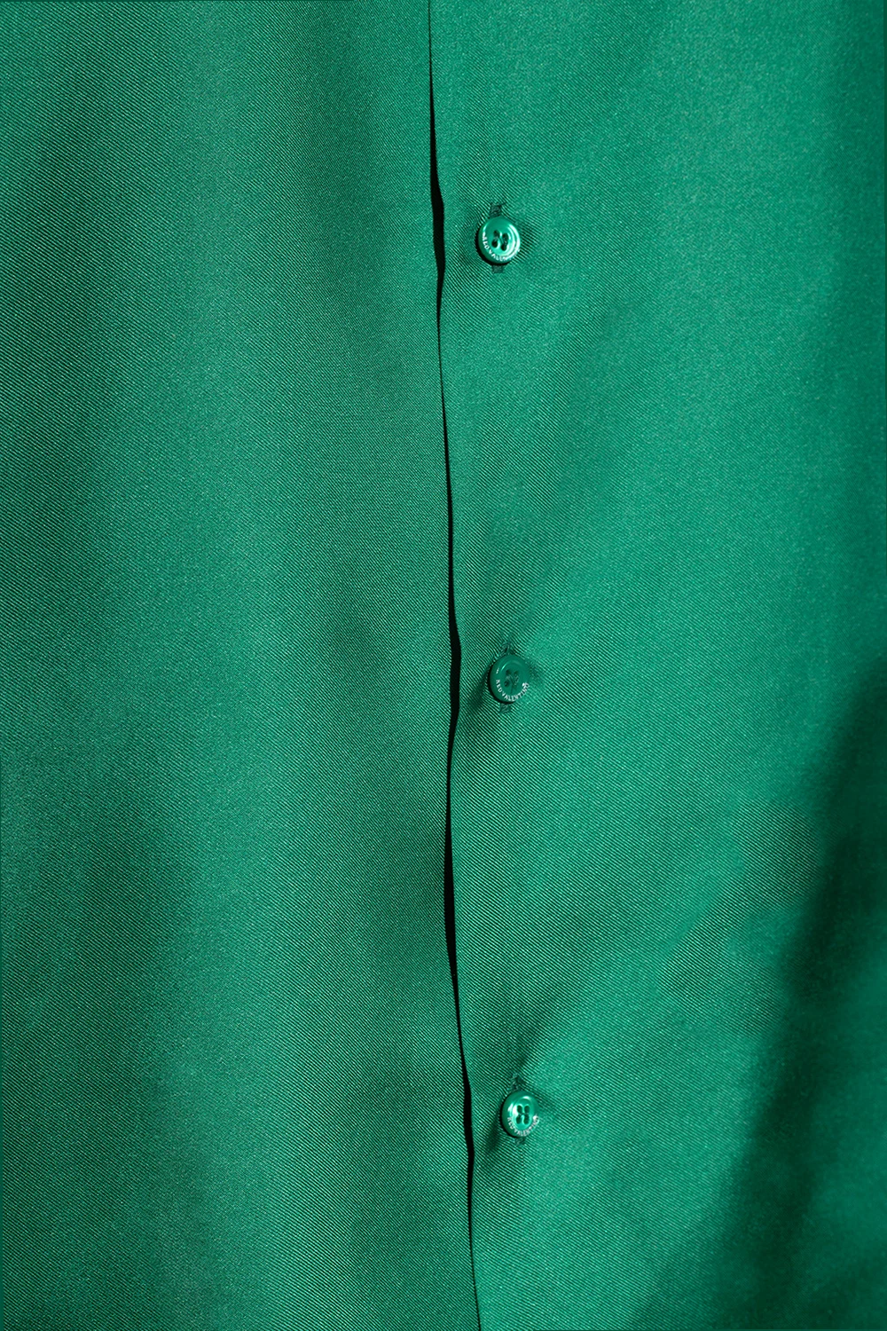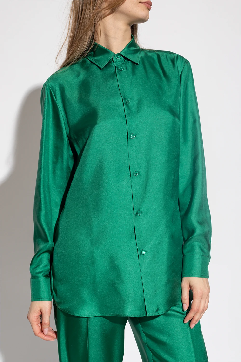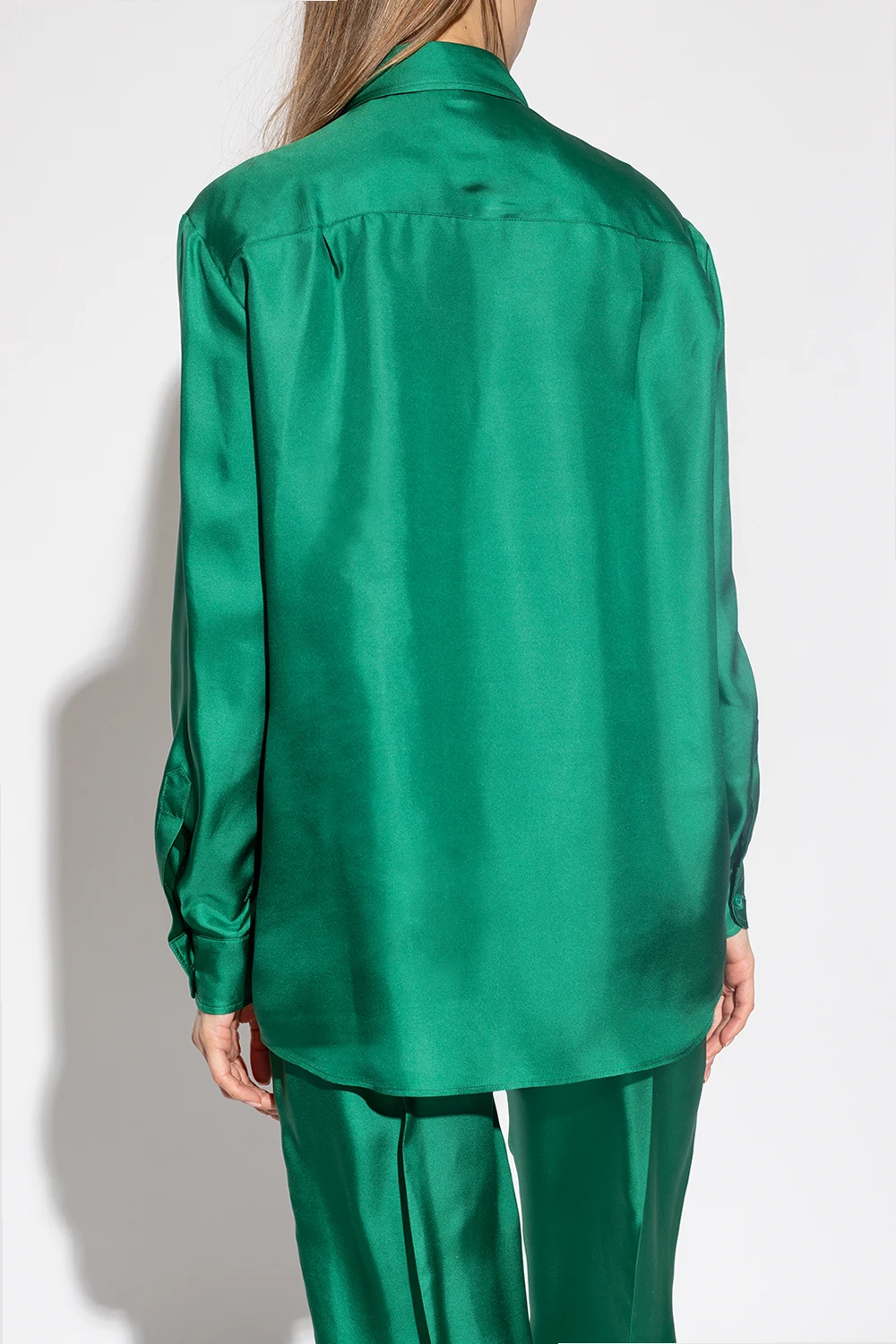 Zielona koszula Red Valentino. Wykonana z jedwabiu. Zapinana na guziki. Długie rękawy wykończone mankietami z zapięciem na guzik.