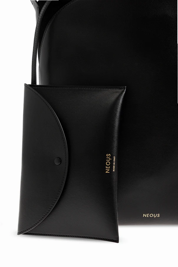 Wykonana ze sztywnej, gładkiej czarnej skóry licowej o półmatowym wykończeniu, zachwyca wyczuwalną jakością i niepowtarzalnym charakterem. Zewnętrzne wytłoczone logo NEOUS w złotym odcieniu dyskretnie podkreśla prestiż tej torby. Wnętrze z praktycznymi kieszeniami oraz zapięciem na magnes zapewniają funkcjonalność, natomiast dołączona saszetka podkreśla dbałość o detale.