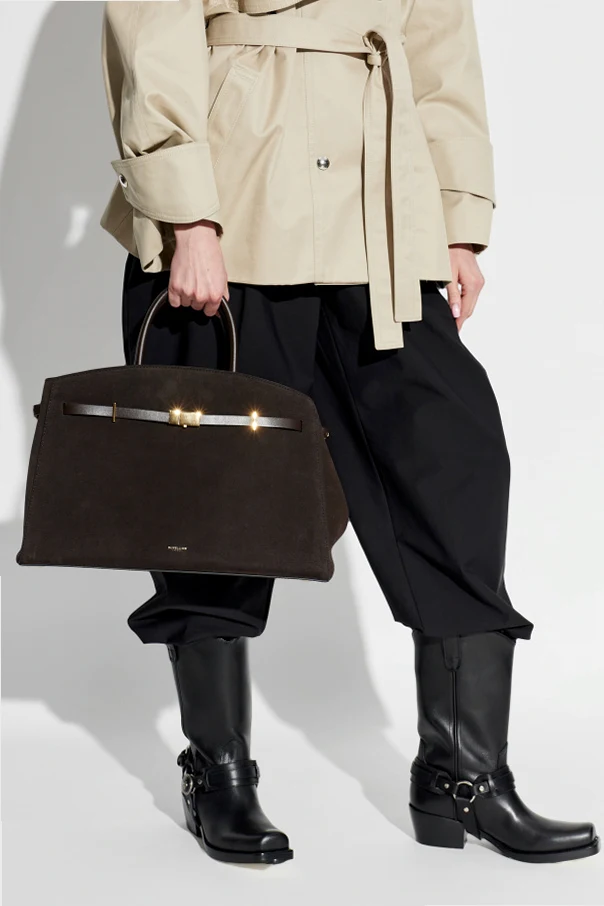 Wykonana z wysokogatunkowej skóry krowiej o matowym wykończeniu, utrzymanej w głębokim, ciemnym brązowym odcieniu, torba idealnie komponuje się z wyrafinowanymi stylizacjami. Komfort użytkowania gwarantują dwa solidne, krótkie uchwyty oraz praktyczny, odpinany pasek na ramię.