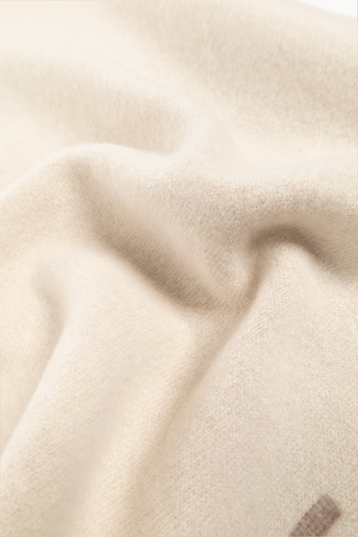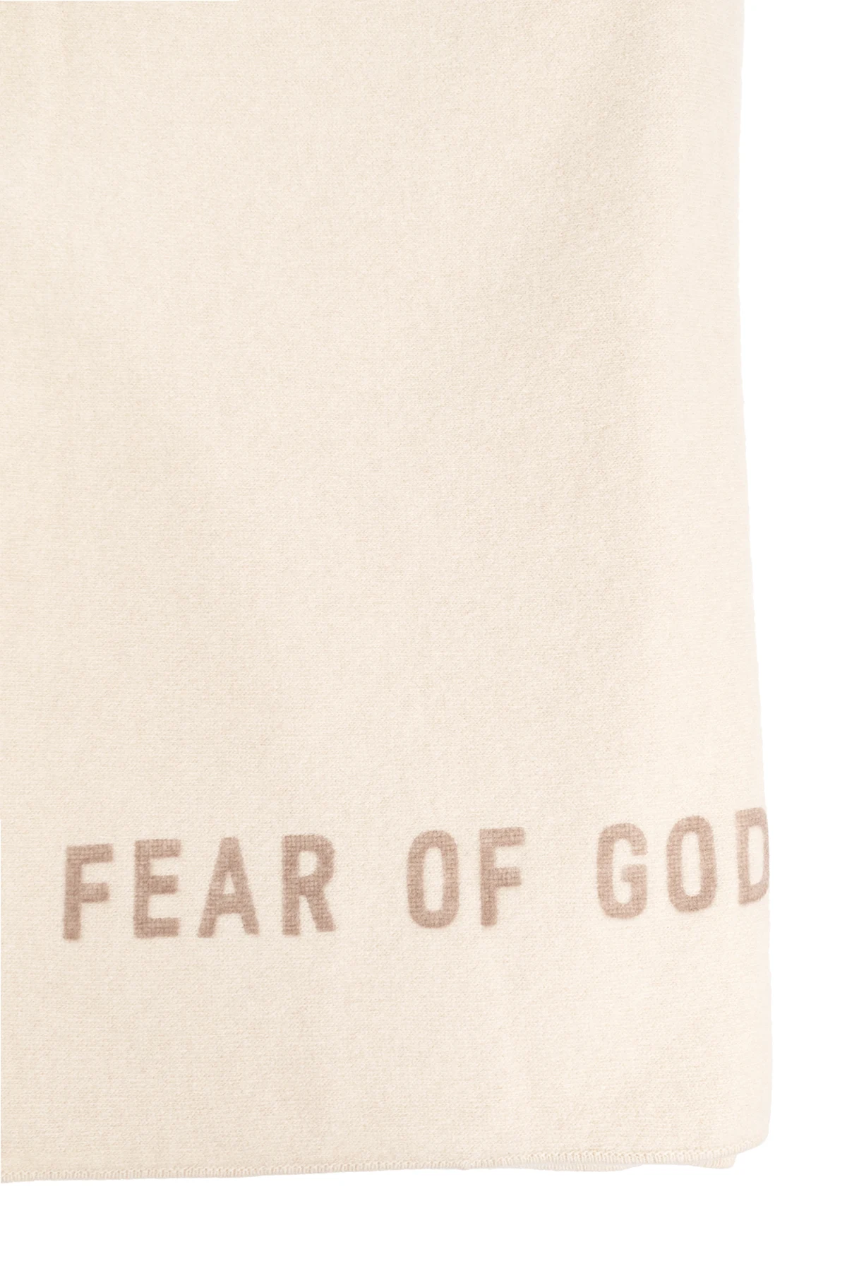 Kremowy koc Fear Of God. Wykonany z wełny z domieszką kaszmiru. Ozdobiony logo.