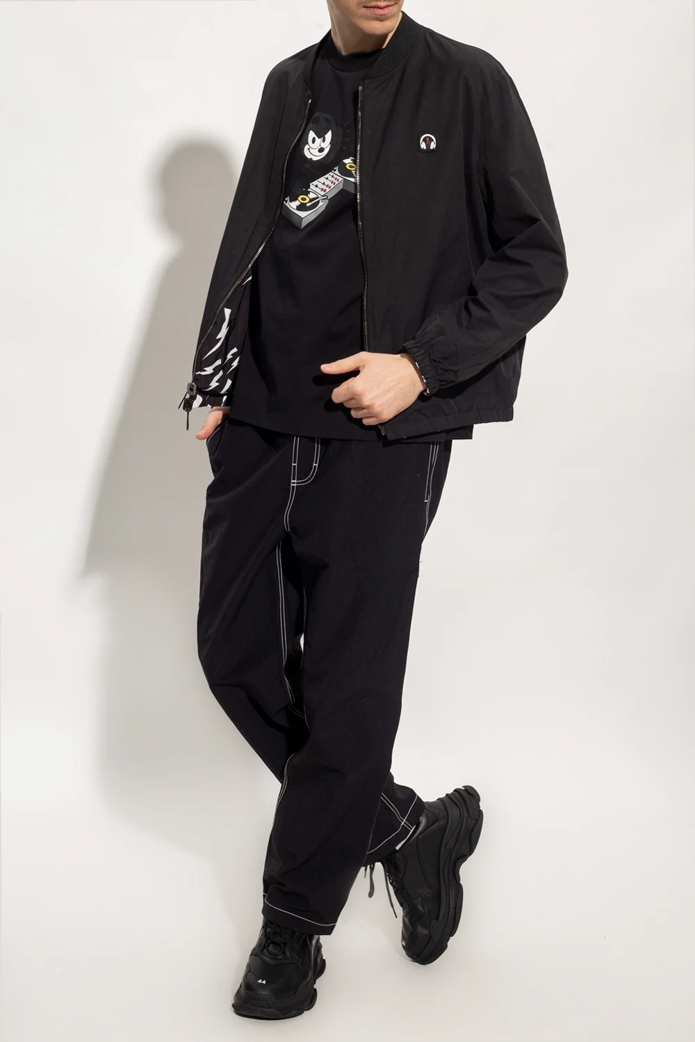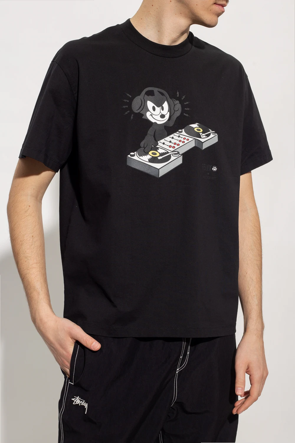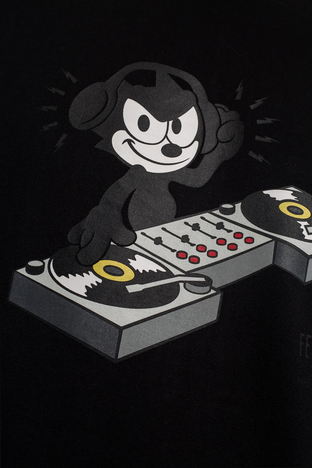 Czarno-biały, bawełniany t-shirt z długimi rękawami Neil Barrett x Felix The Cat. Z przodu ozdobiony kolorowym nadrukiem przedstawiającym kultowe logo Thunderbolt i wizerunki uśmiechniętej postaci z kreskówek. Okrągły dekolt.