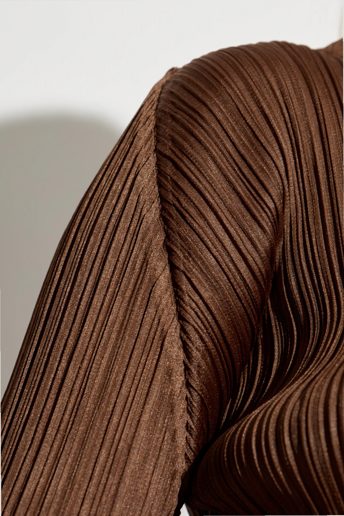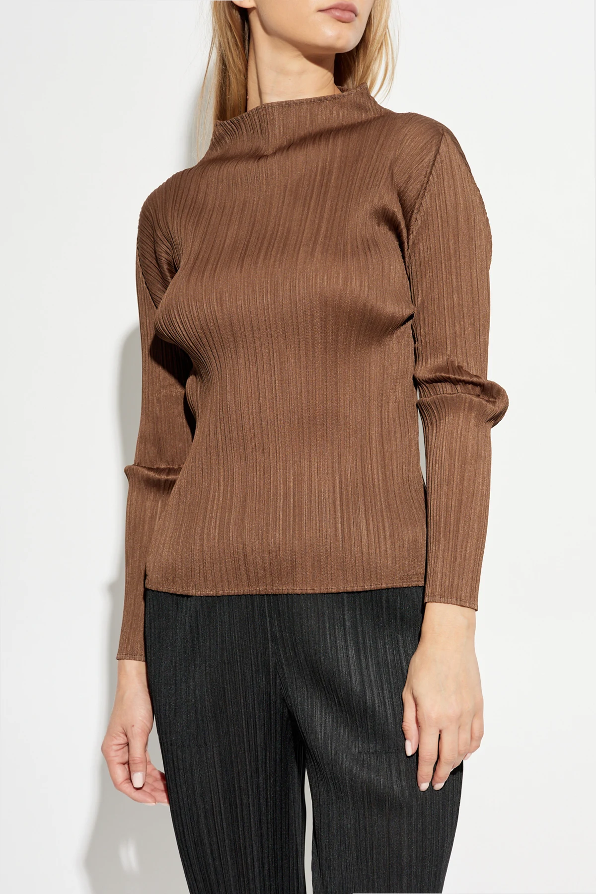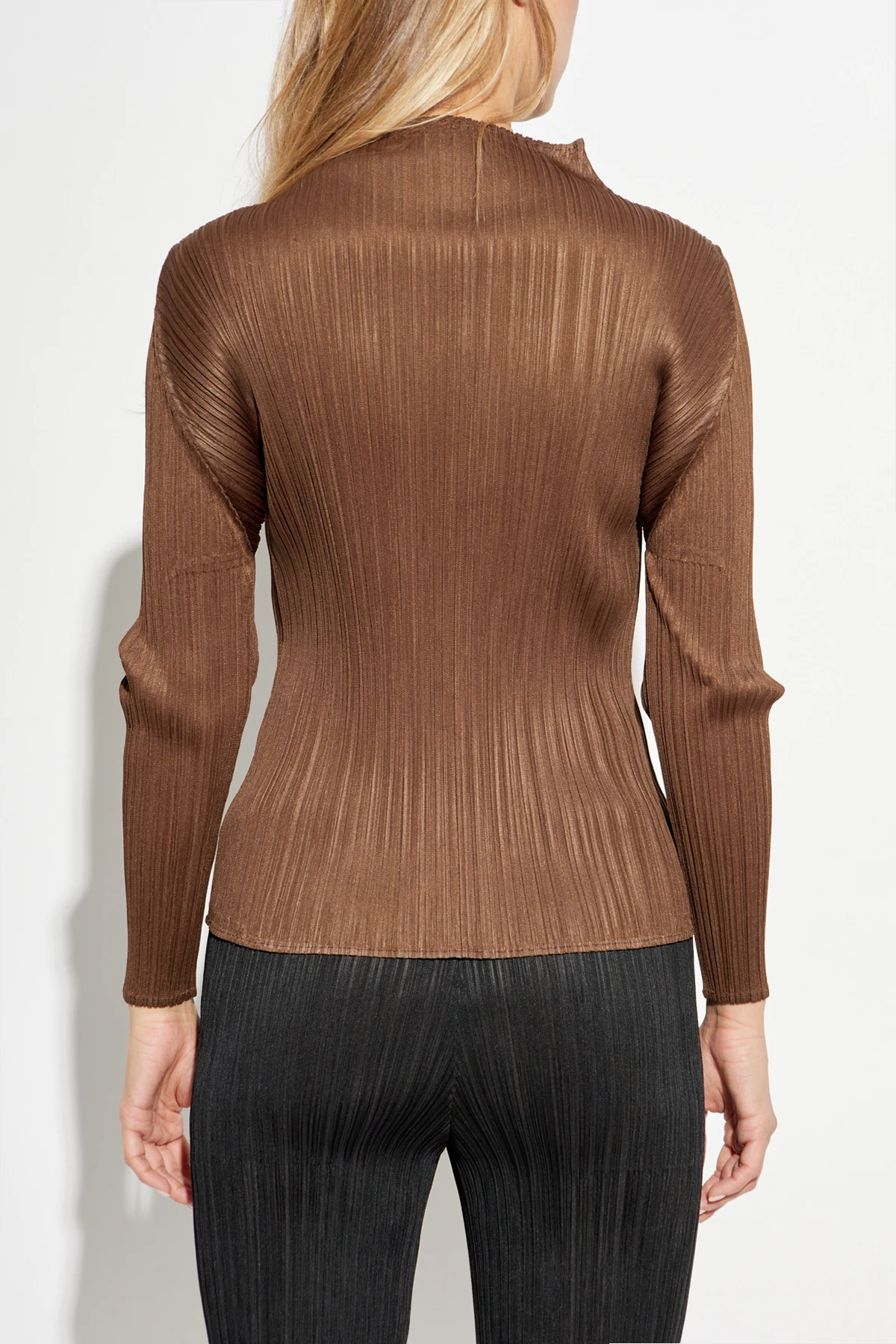 Odkryj esencję elegancji z Plisowanym topem z długimi rękawami od renomowanego projektanta Pleats Please Issey Miyake. Ten wyjątkowy element garderoby, w klasycznym odcieniu brązu, harmonijnie łączy w sobie minimalistyczny design z nutą awangardy.