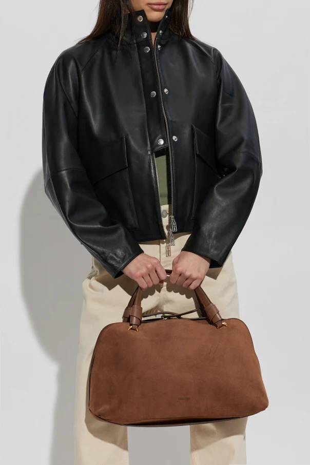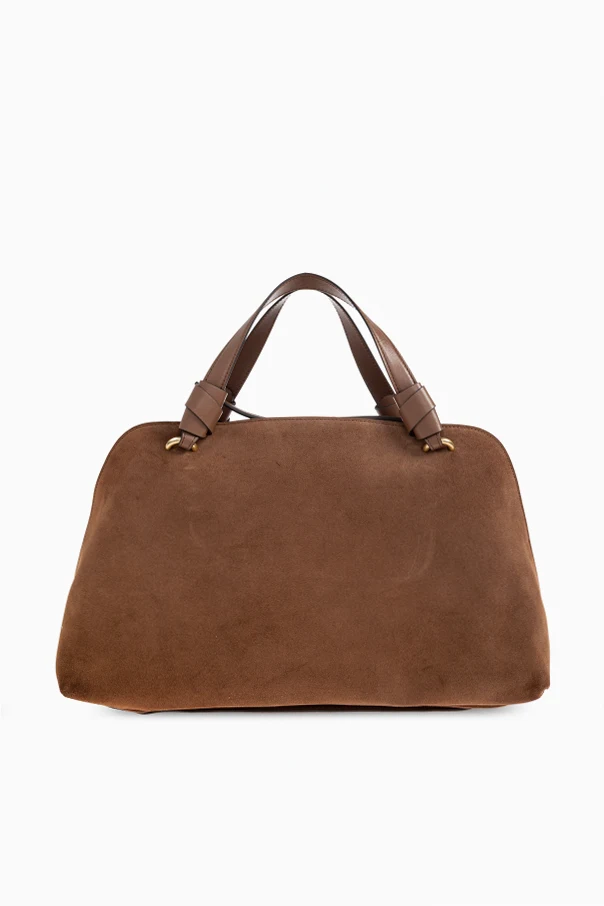 Dwa zaokrąglone uchwyty ze skóry, przemyślnie wykończone ozdobnymi przeszyciami i złocistymi okuciami, nadają całości eleganckiego sznytu oraz gwarantują wygodę noszenia. Torbę wyróżnia również subtelnie wytłoczone logo projektanta, ulokowane centralnie w dolnej części. Starannie dobrane materiały oraz precyzyjne detale podkreślają jej unikalność i szlachetność.