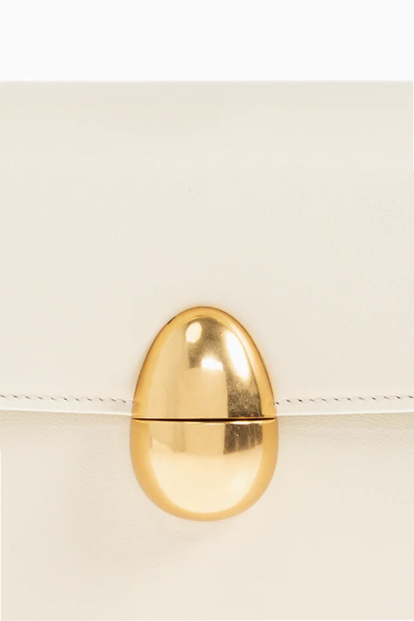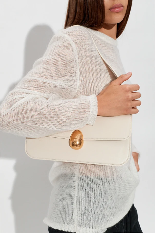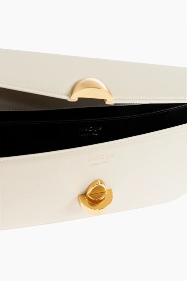 Szczególną uwagę przyciąga wyraziste, owalne zapięcie w złotym kolorze, przypominające finezyjną biżuterię, które wytwornie komponuje się z całością. Wnętrze torby zdobi delikatne, tłoczone logo „NEOUS”, będące godłem autentyczności oraz kunsztu wykonania.
