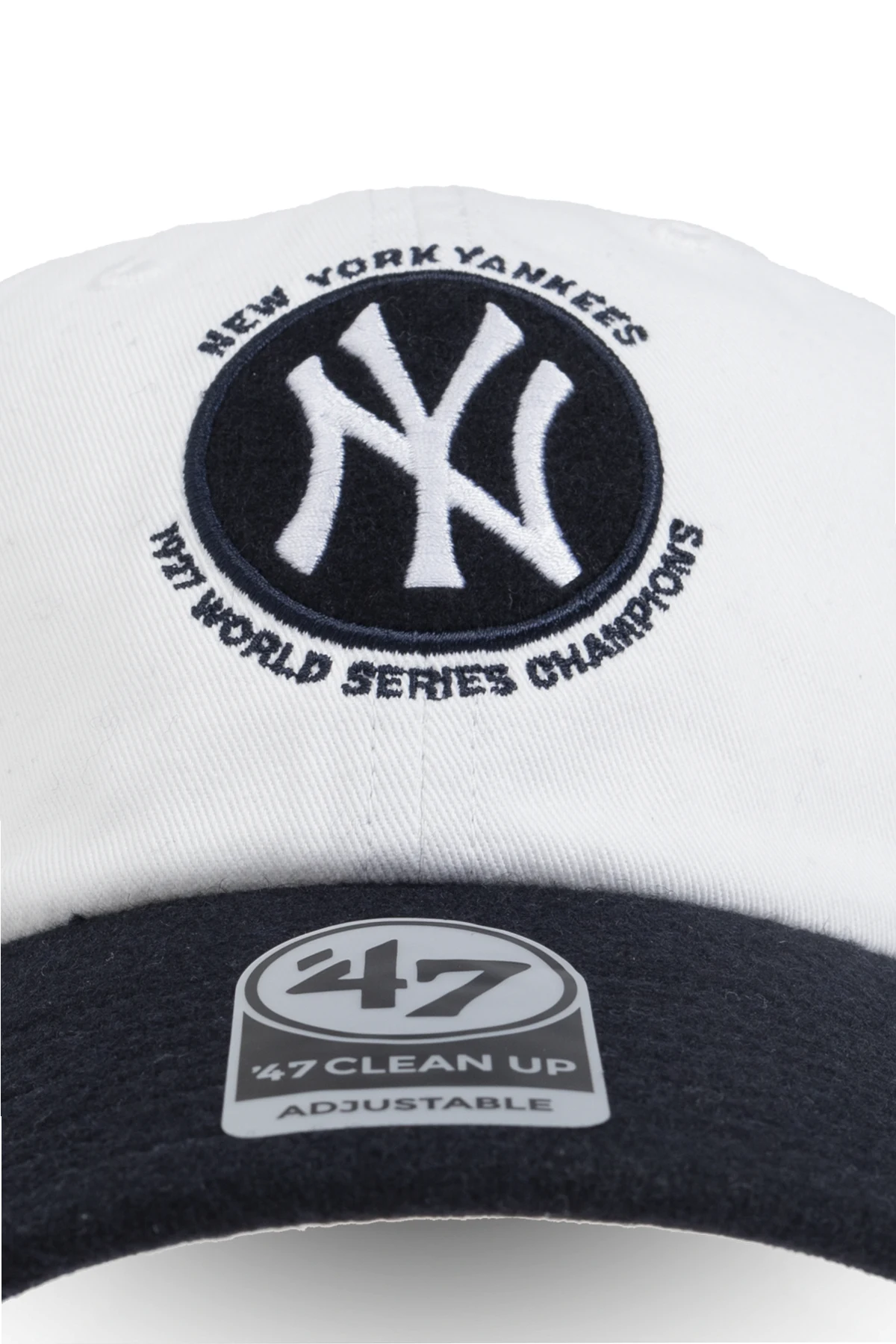 Na przedzie czapki dumnie prezentuje się wyhaftowane logo New York Yankees, otoczone napisem "NEW YORK YANKEES" oraz "27X WORLD SERIES CHAMPIONS", co nadaje jej prestiżowy charakter. Marka 47 subtelnie zaznacza swoją obecność zarówno na daszku, jak i z boku czapki, dodając jej autentyczności.
