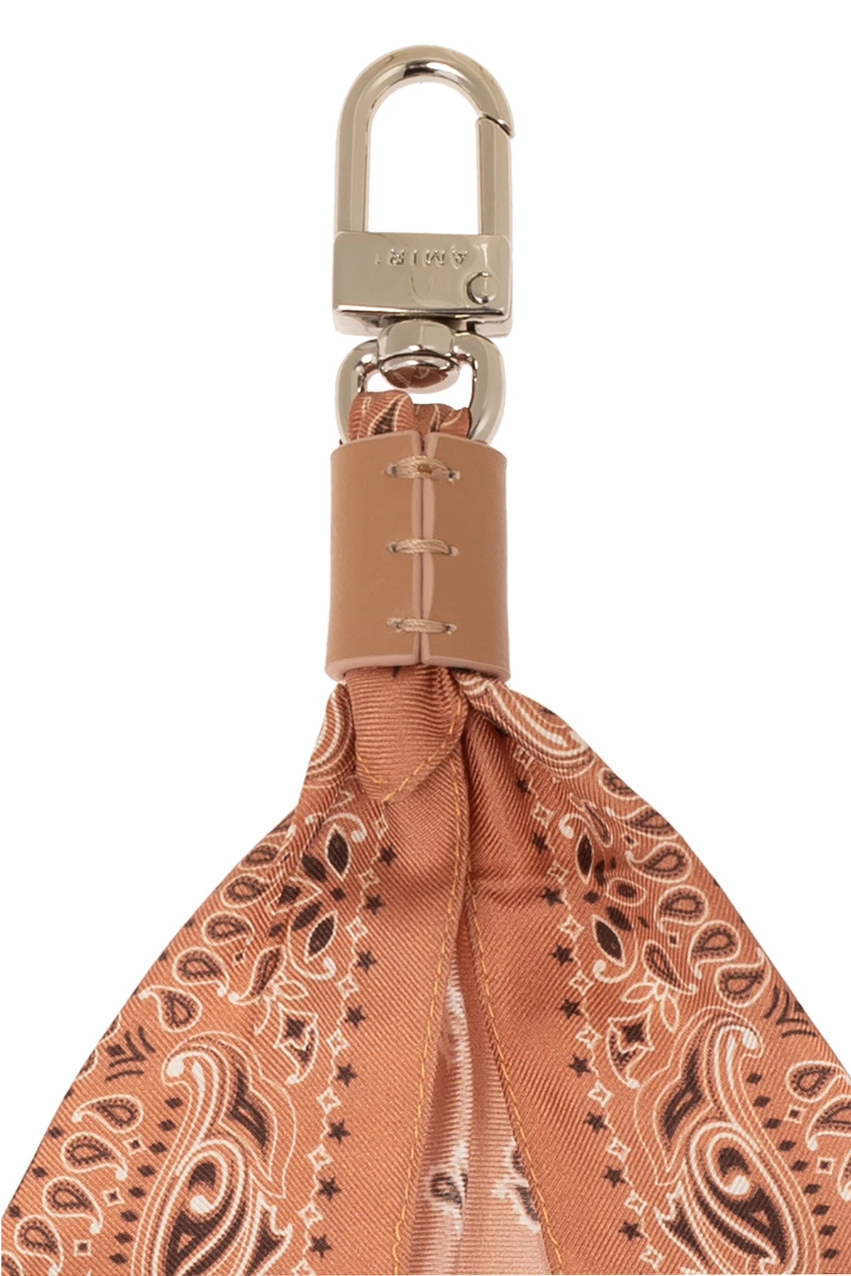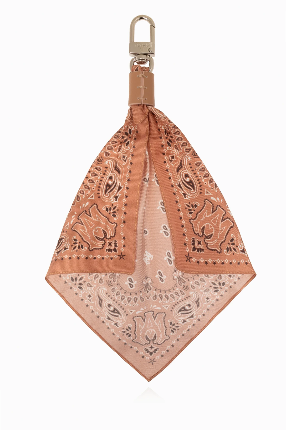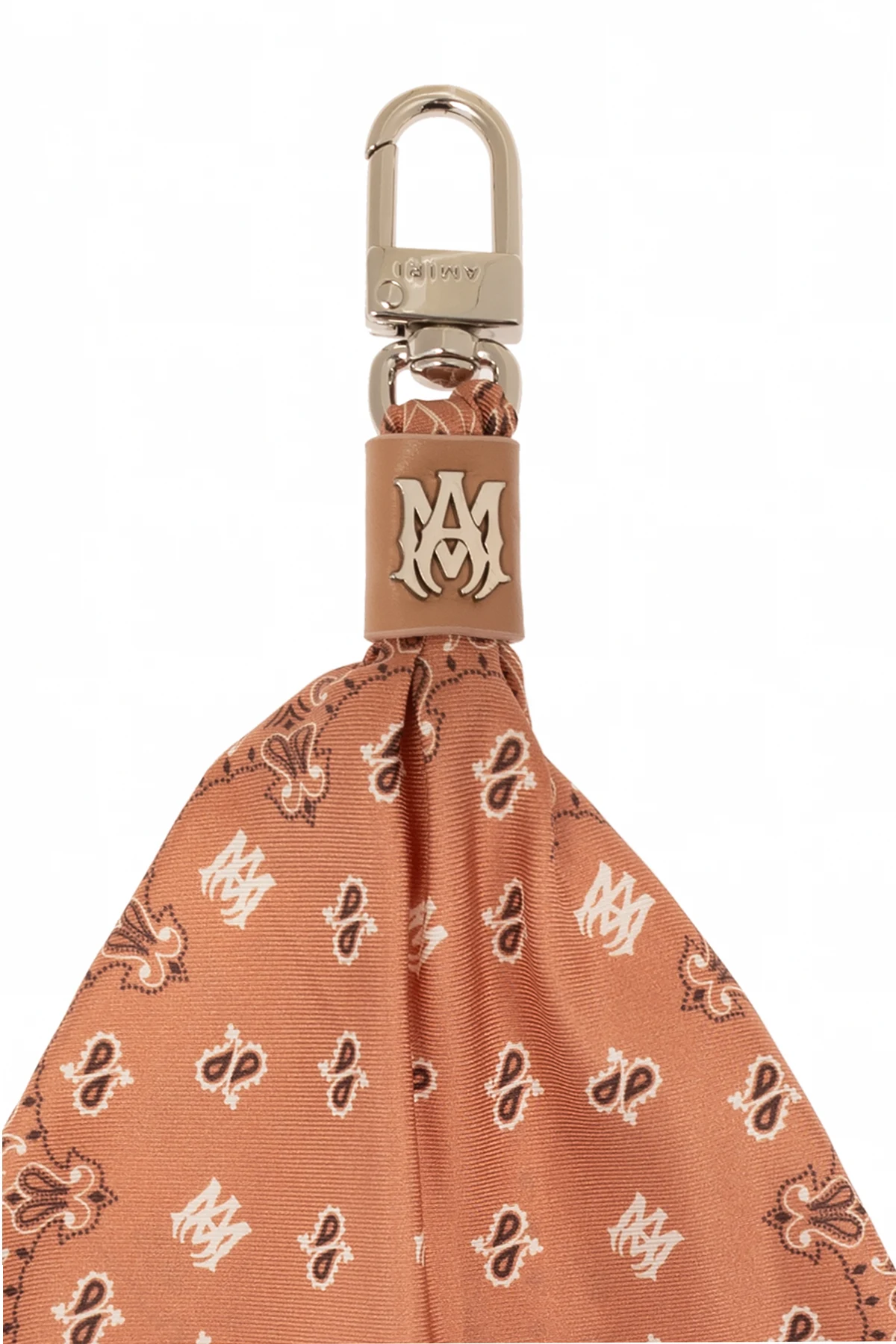 Brelok z dekoracyjną chustą autorstwa Amiri jest synonimem luksusowej subtelności i funkcjonalnego designu. Utrzymany w ognistych tonacjach pomarańczowego, wyposażony w hipnotyzujący wzór 'paisley' oraz logotyp projektanta, ten akcesorium jest kwintesencją elegancji.