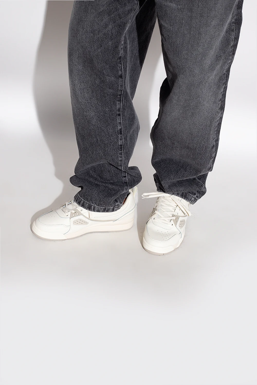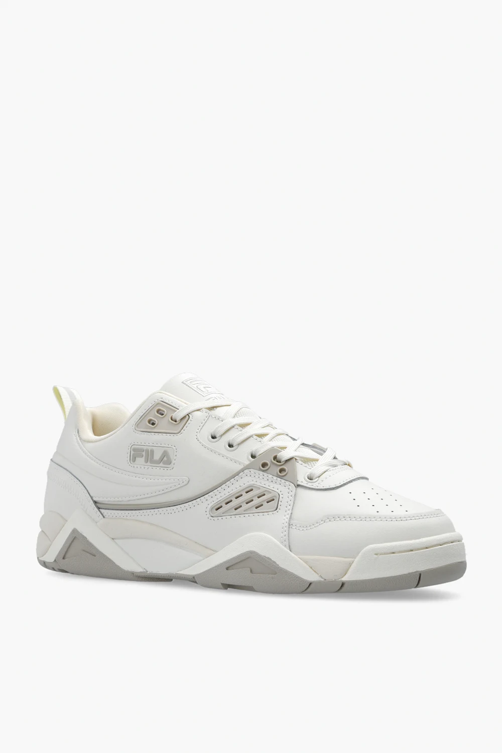 Kremowo-beżowe, sznurowane buty sportowe, model ‘Casim’ Fila. Wykonane ze skóry. Z przodu, z boku i z tyłu ozdobione logo. Dekoracyjne, gumowe wstawki i odblaskowe detale. Perforowany przód. Kremowo-beżowa, gumowa podeszwa.