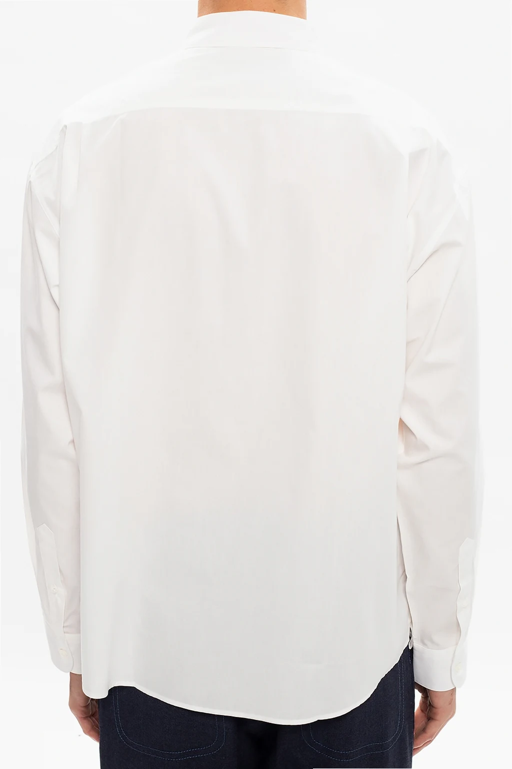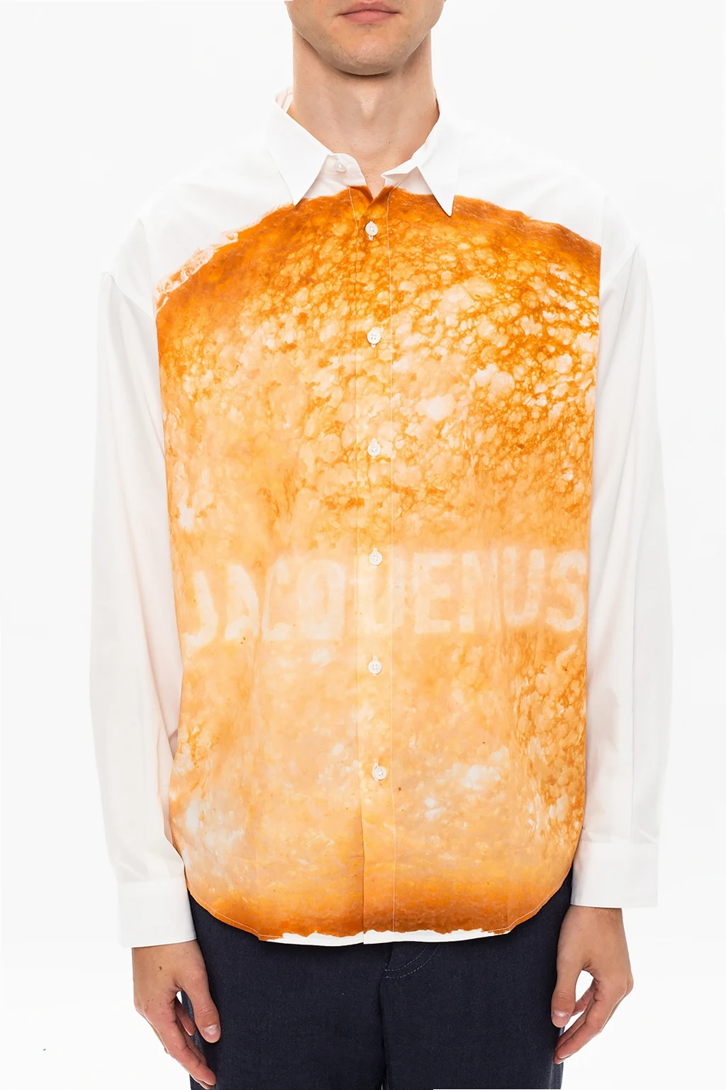 Biała, bawełniana koszula, model 'Henri' Jacquemus. Zapinana na guziki. Ozdobiona nadrukiem w kolorze pomarańczowym z logo.