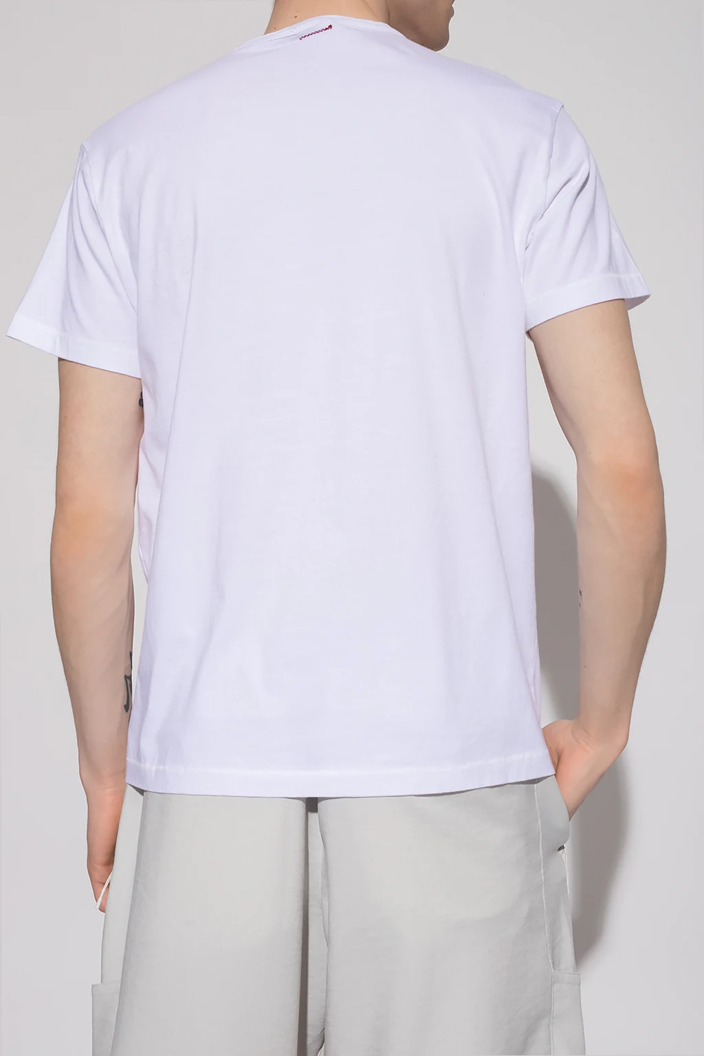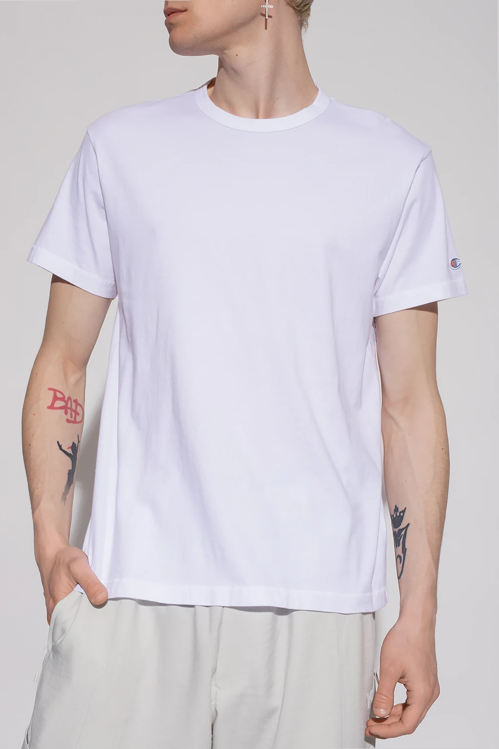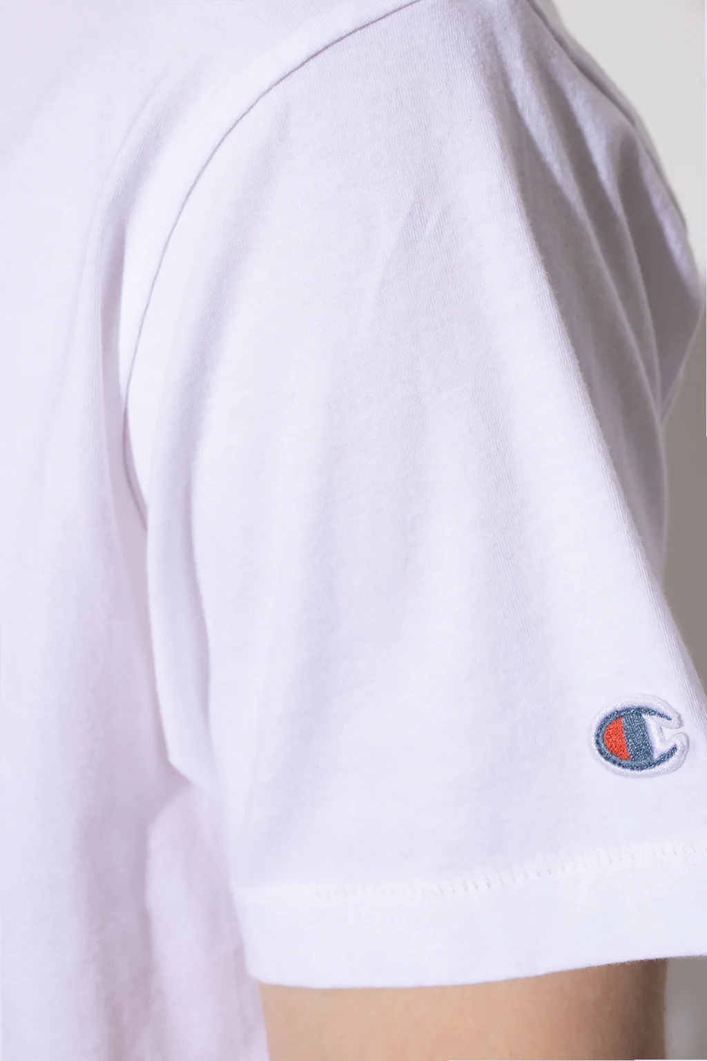 Biały t-shirt o dopasowanym kroju Champion x Todd Snyder. Wykonany z bawełny. Ozdobiony na rękawie naszywką z logo. Okrągły dekolt wykończony lamówką, krótkie rękawy.