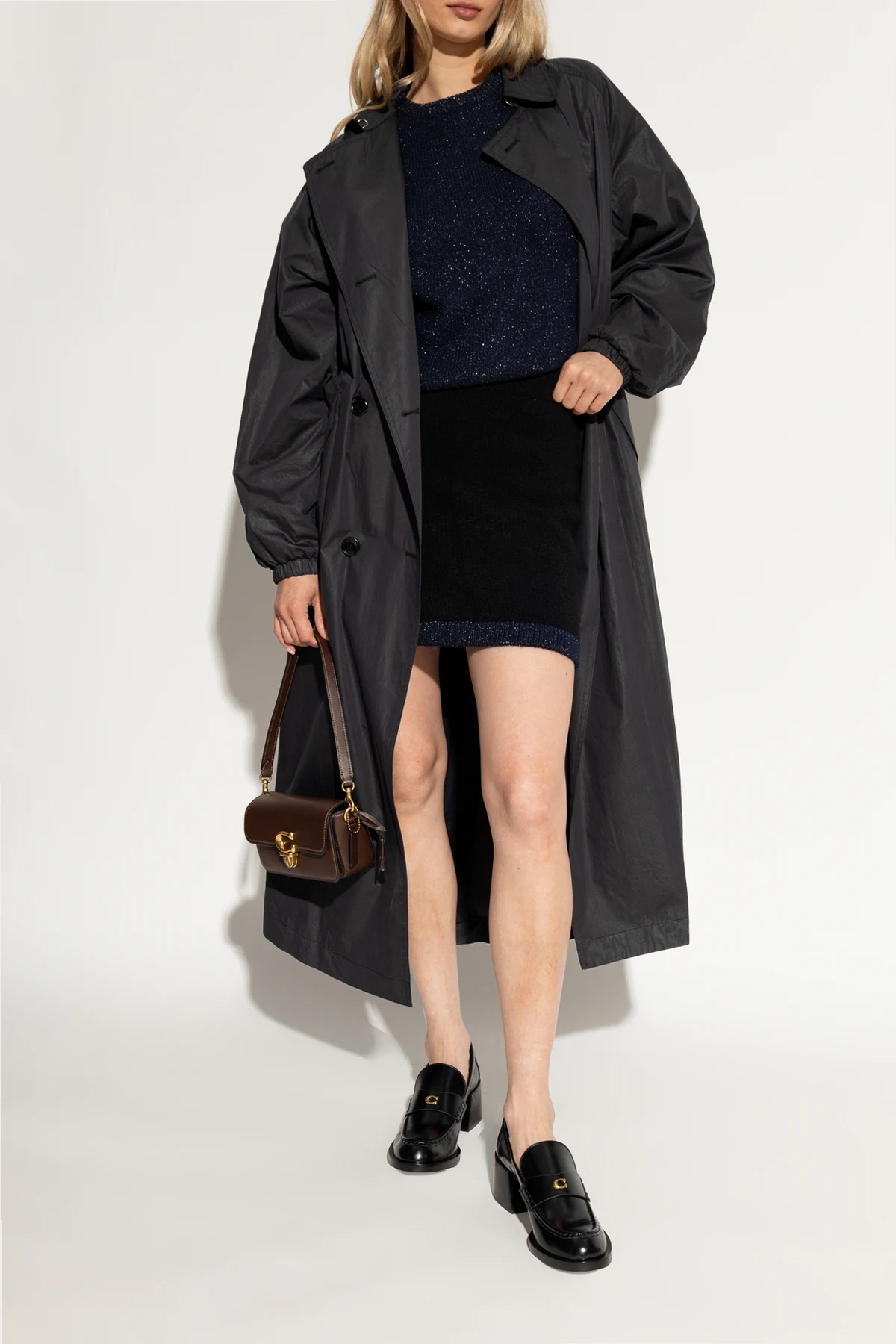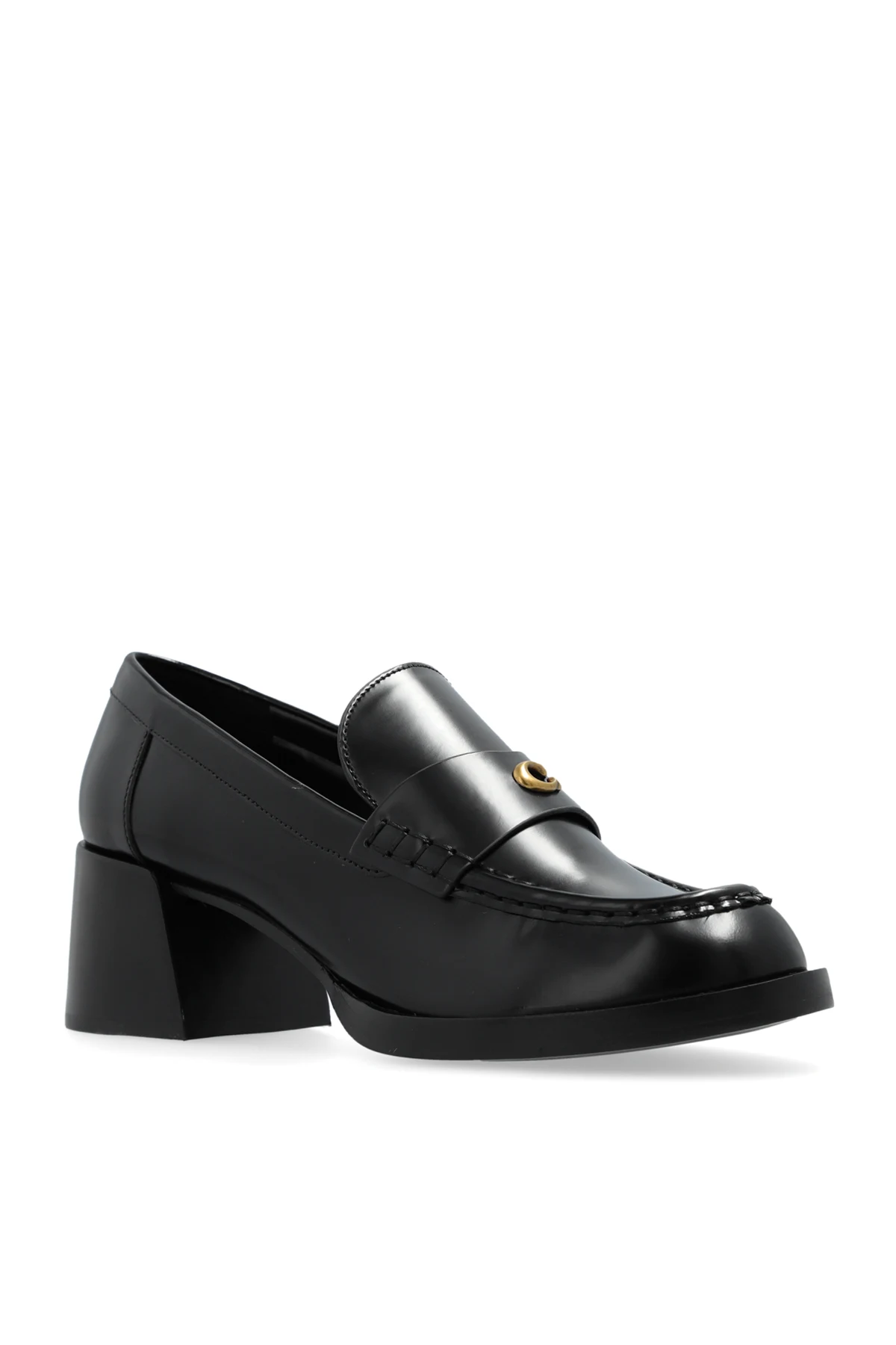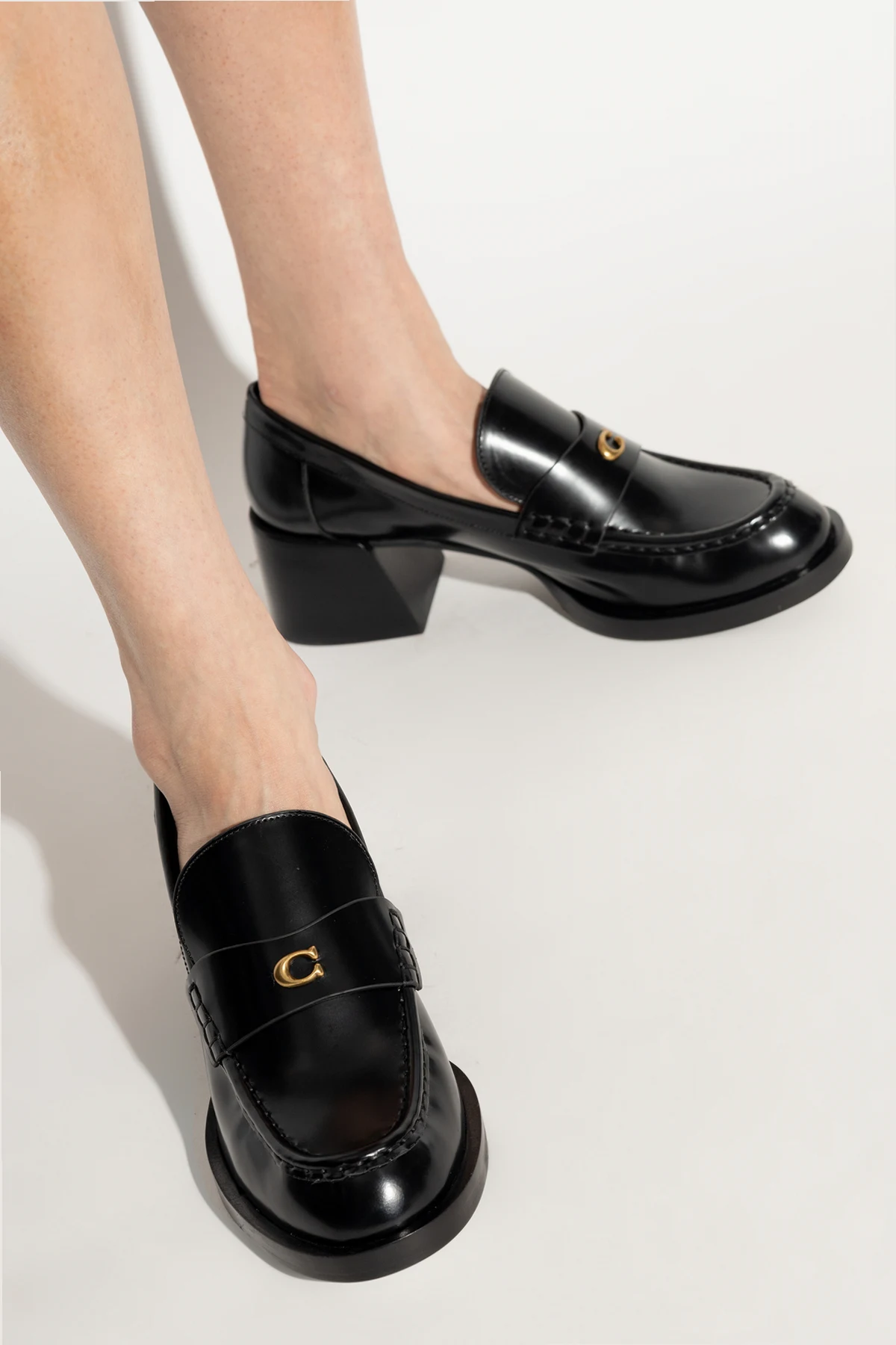 Przedstawiamy Państwu wykwintny model butów na obcasie "Natalie" od renomowanej marki Coach , który stanowi kwintesencję luksusowego designu i niezrównanego komfortu. Wykonane z najwyższej jakości skóry , te czarne buty o klasycznym kroju loafer emanują elegancją dzięki średniemu, stabilnemu obcasowi i zaokrąglonemu noskowi. Ich wyrafinowany charakter podkreśla ozdobna, połyskująca klamra, zdobiąca przód buta, na której dumnie prezentuje się złote logo projektanta .
