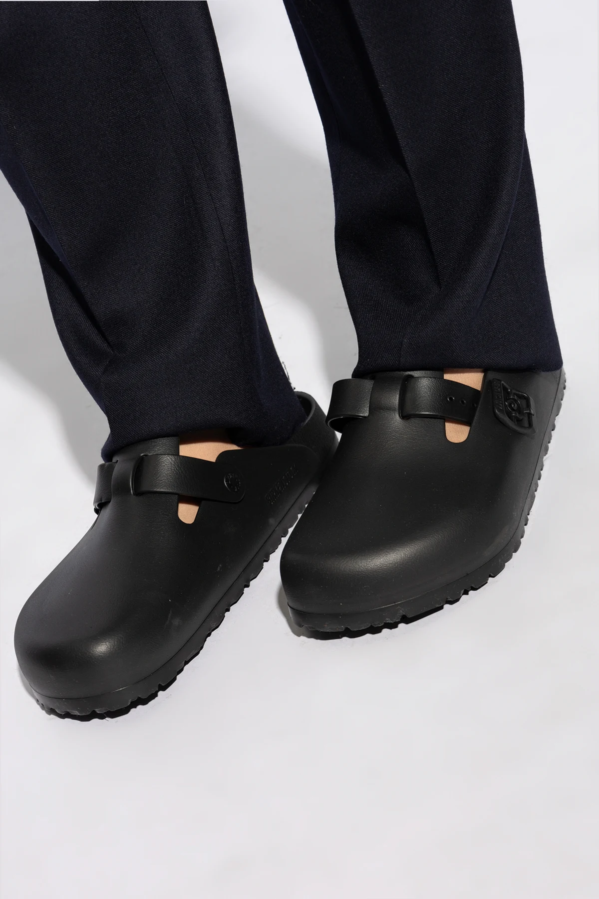 Logo projektanta Birkenstock na boku klapka dodaje prestiżu i autentyczności.