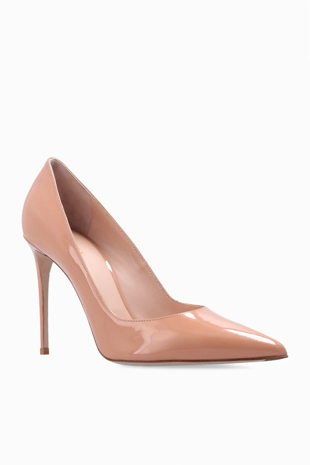Beżowe buty na obcasie, model ‘Eva’ Le Silla. Wykonane z lakierowanej skóry. Nosek w szpic. Jasnobeżowa podeszwa wykonana ze skóry i gumy.