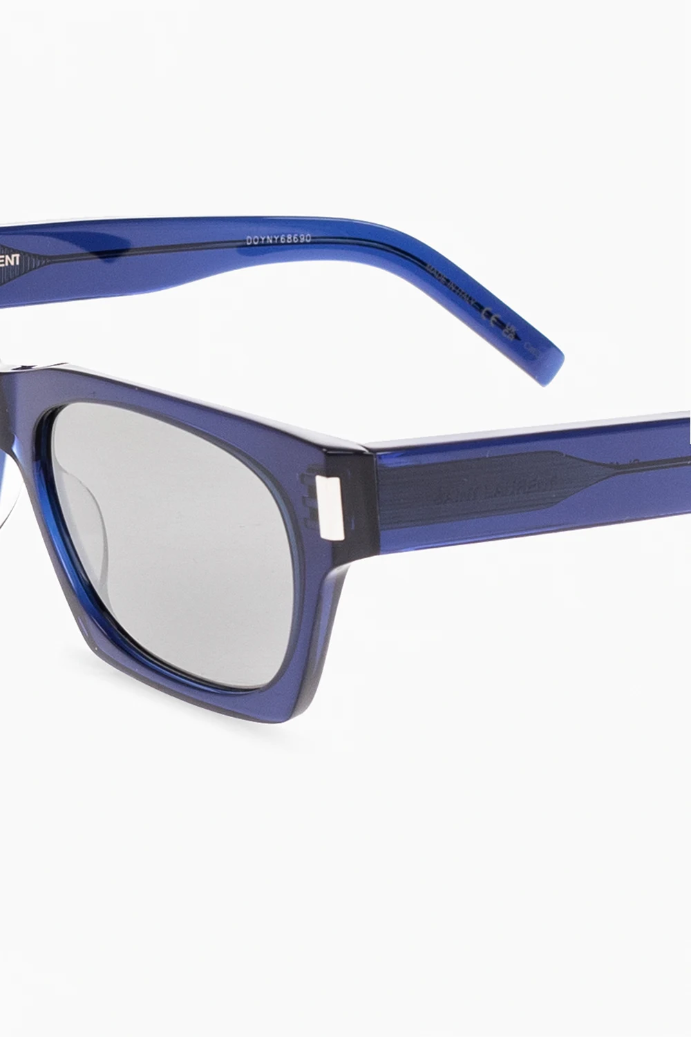 Granatowe okulary przeciwsłoneczne, model ‘SL 402’ Saint Laurent. Zauszniku ozdobione wytłoczonym logo. Nylonowe soczewki w kolorze szarym ze 100% ochroną przed promieniowaniem UVA/UVB. Dołączone etui.