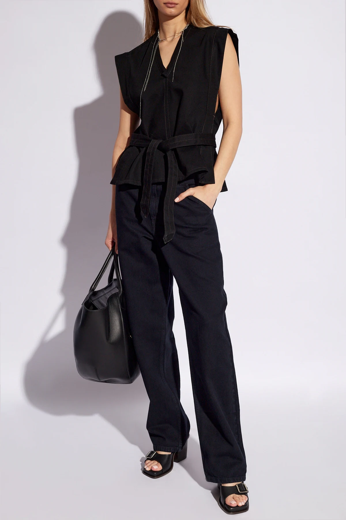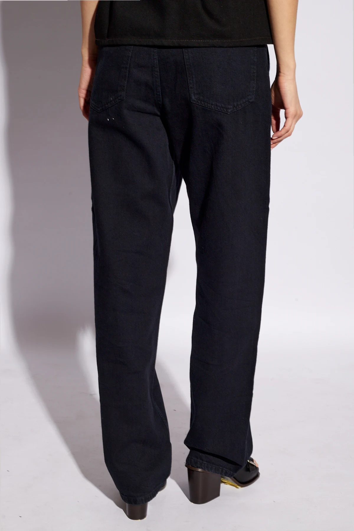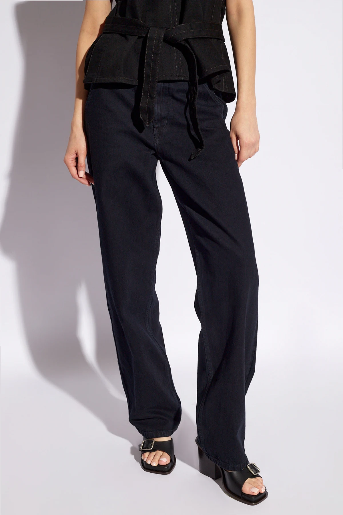 Czarne jeansy z wysokim stanem Lemaire. Zapinane na guzik i zamek. Z przodu i z tyłu dwie wsuwane kieszenie. Szerokie, proste nogawki.
