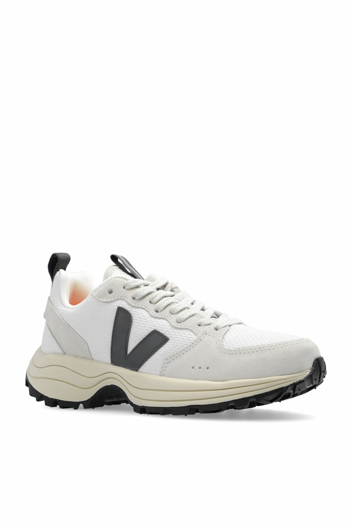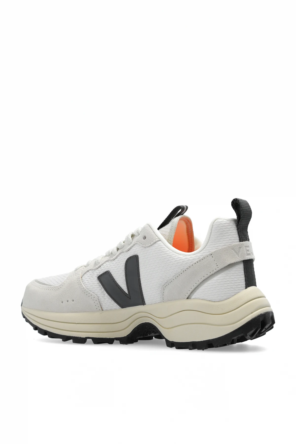 Biało-szare, sznurowane buty sportowe, model ‘Venturi Hexamesh’ Veja. Wykonane z oddychającej siatki Alveomesh pochodzącej z recyklingu. Wykończone zamszem. Charakterystyczna dla marki naszywka w kolorze szarym wykonana z gumy oraz odpadów ryżowych. Odblaskowe detale. Sznurówki wykonane z organicznej bawełny. Warstwa wewnętrzna o specjalnej, siateczkowej strukturze wykonana z materiału pochodzącego z recyklingu – cechuje się wyjątkową odpornością na tarcie. Wkładka wykonana z trzciny cukrowej, gumy Amazon, bawełny organicznej i pochodzącej z recyklingu pianki EVA. Lateksowe poduszki amortyzujące L-Foam. Czarno-kremowa, gumowa podeszwa wykonana z materiałów organicznym oraz pochodzących z recyklingu.