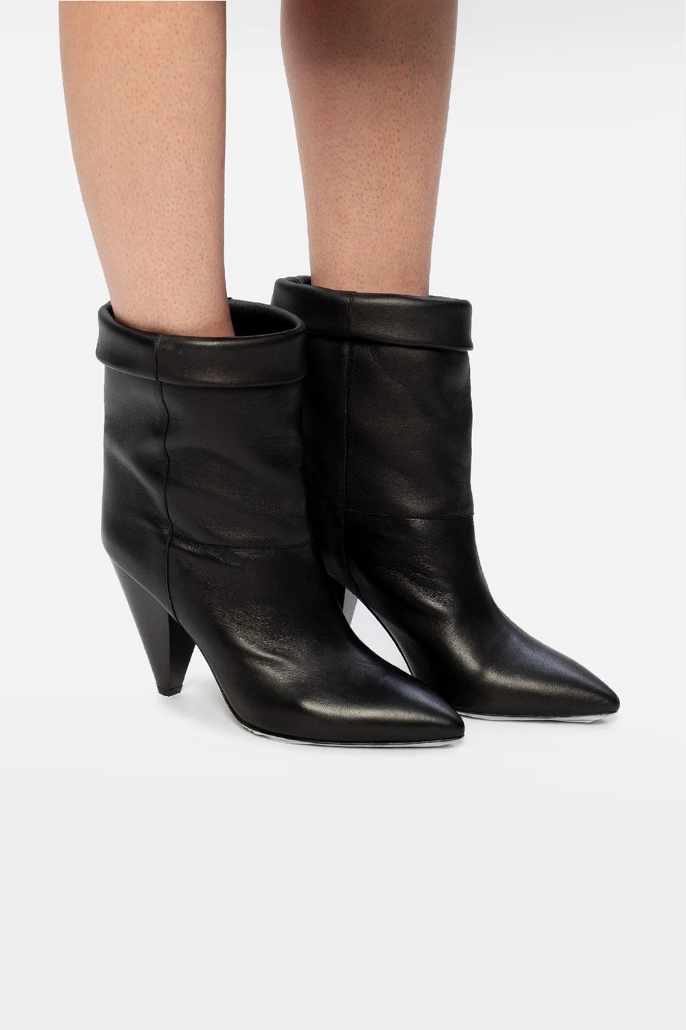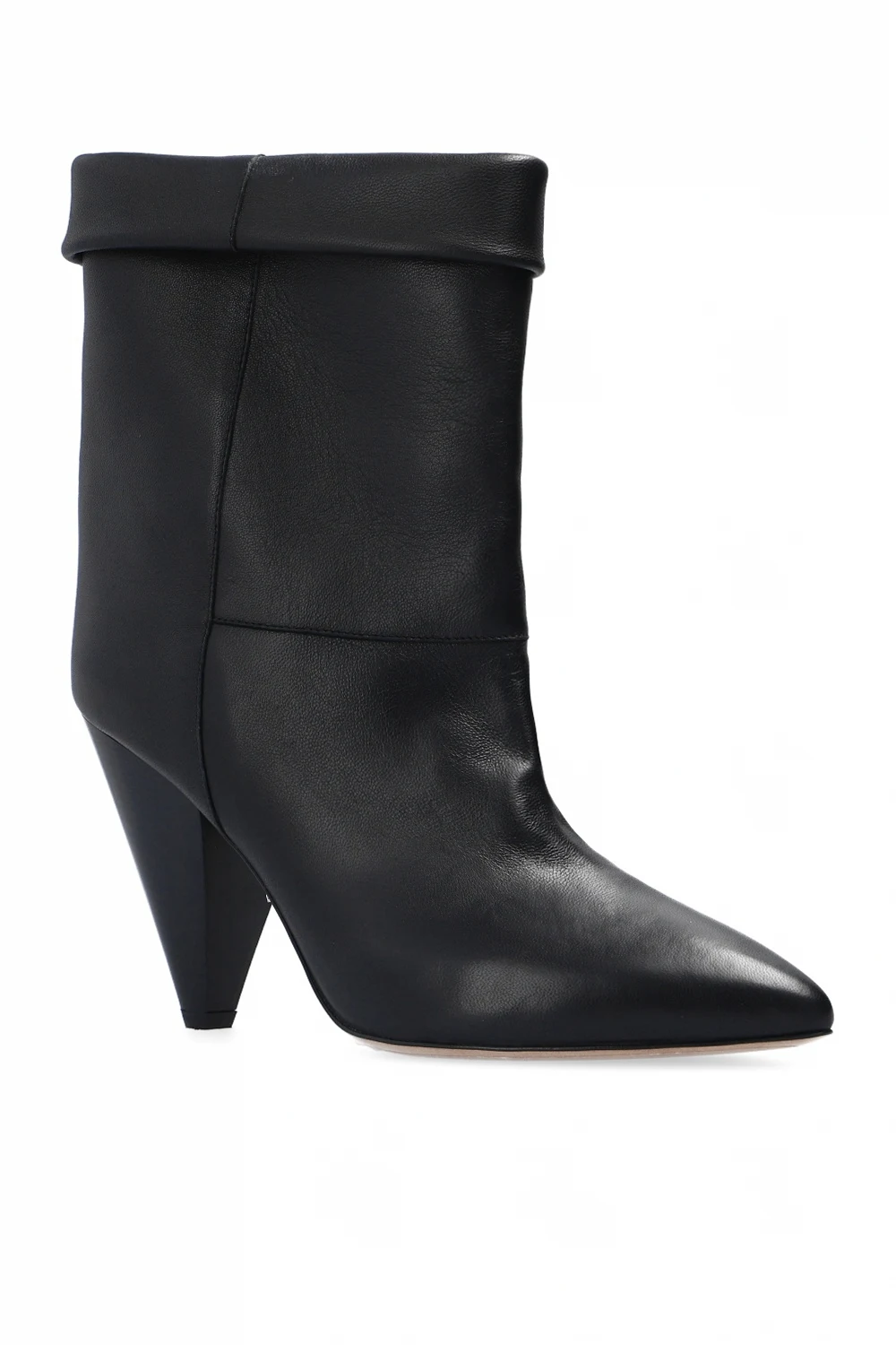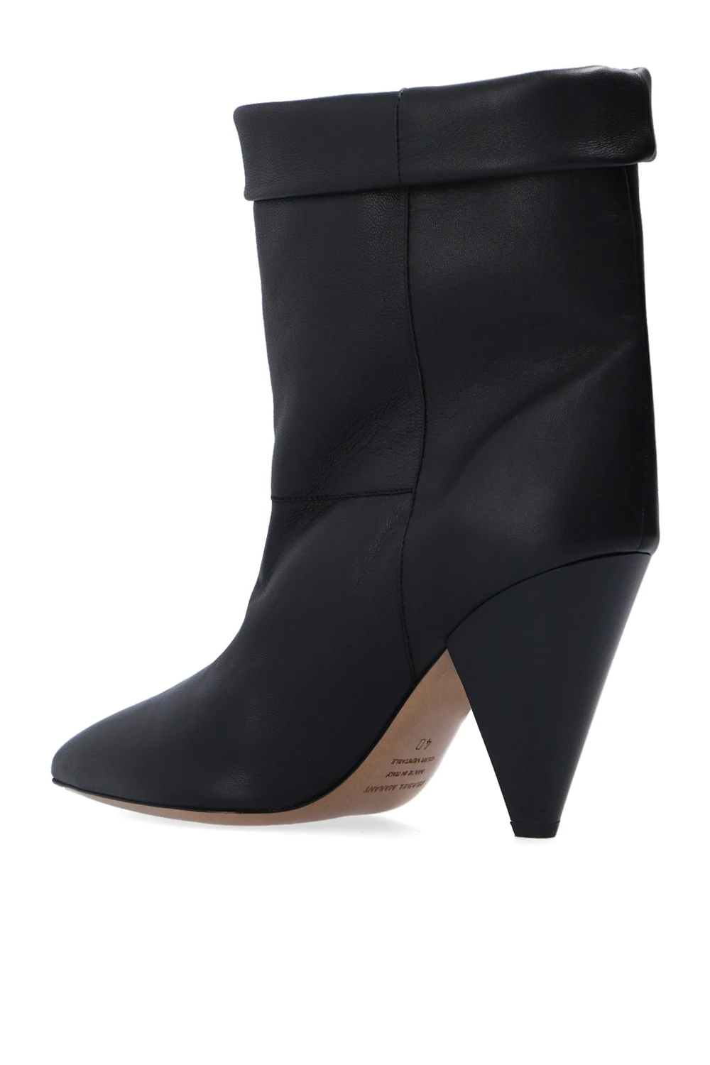 Czarne, wsuwane kozaki na obcasie, model ‘Conic’ Isabel Marant. Wykonane z jagnięcej skóry. Na górze dekoracyjne podwinięcie. Beżowa, skórzana podeszwa.