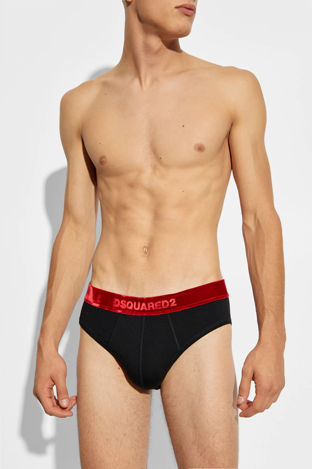 Te ekskluzywne bawełniane slipy marki Dsquared2 to kwintesencja elegancji i najwyższego komfortu. Wykonane z wysokiej jakości bawełny, zapewniają niezrównane uczucie wygody przez cały dzień. Jednolita, czarna barwa slipów została subtelnie przełamana przez szeroki, czerwony pas w talii, na którym widnieje wypisane logo marki "DSQUARED2".