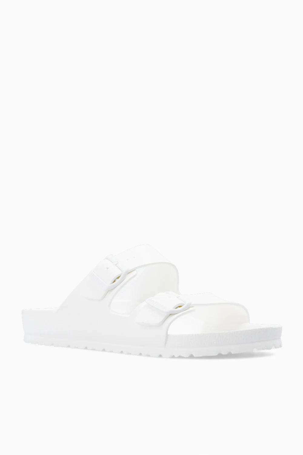 Białe klapki, model ‘Arizona EVA’ Birkenstock. Wykonane z pianki EVA. Regulowane paski z klamrą z logo.