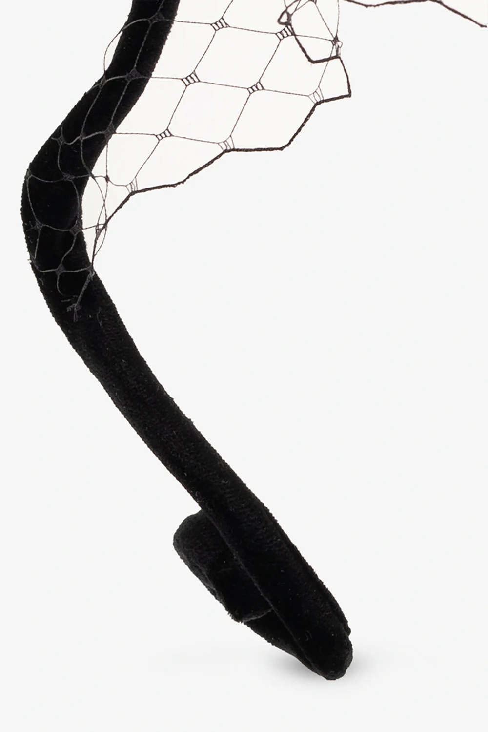 Czarna, falista opaska Lanvin. Wykonana z aksamitu. Wykończona woalką i aplikacją z logo w kolorze złotym.