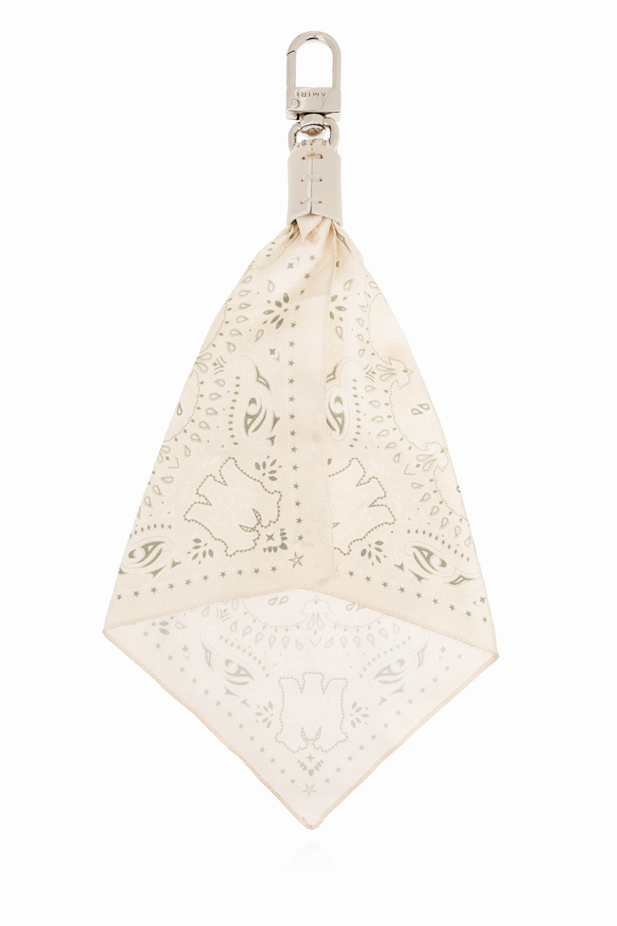 Z przyjemnością prezentujemy Państwu brelok z dekoracyjną chustą od renomowanego projektanta Amiri , który łączy w sobie nie tylko funkcjonalność, ale również niebywałą elegancję. Wykonany z najwyższej jakości jedwabiu i metalu , ten akcesorium charakteryzuje się subtelnym kremowym kolorem oraz wyrafinowanym designem.