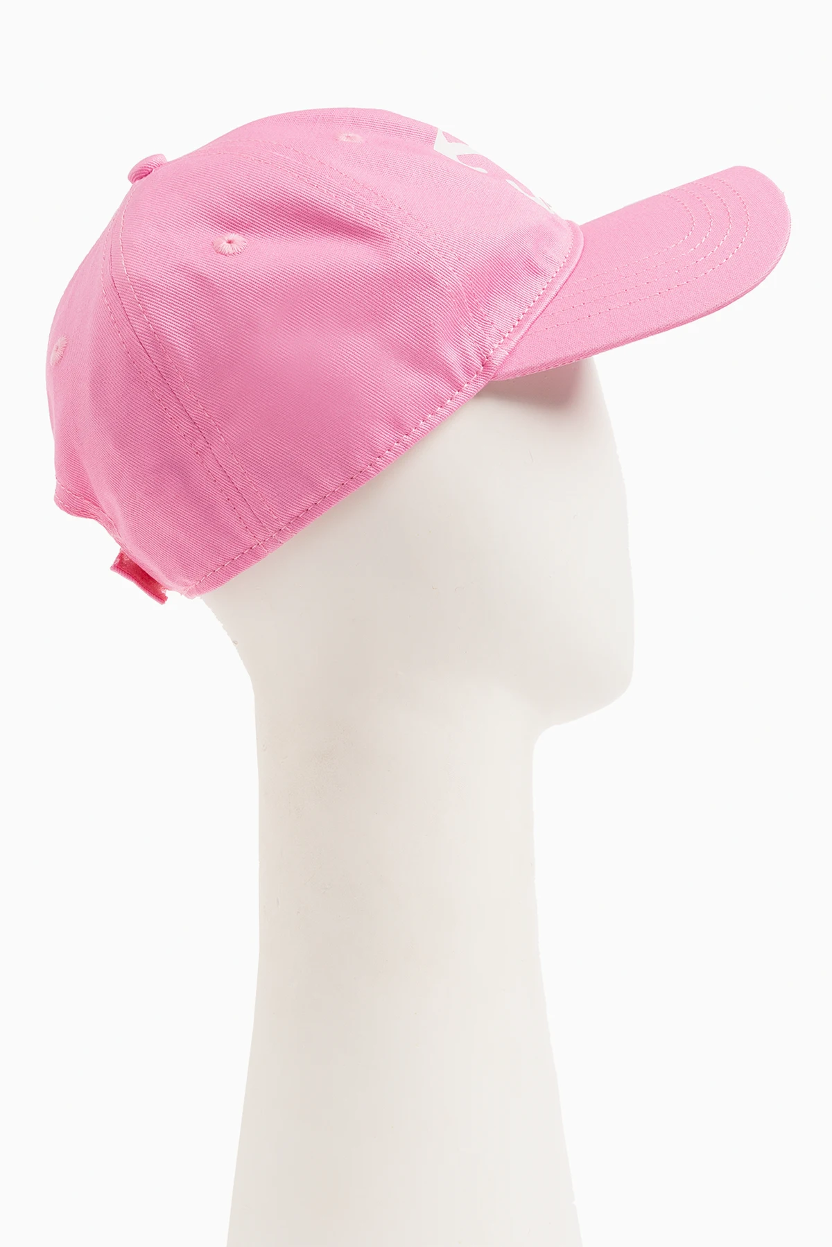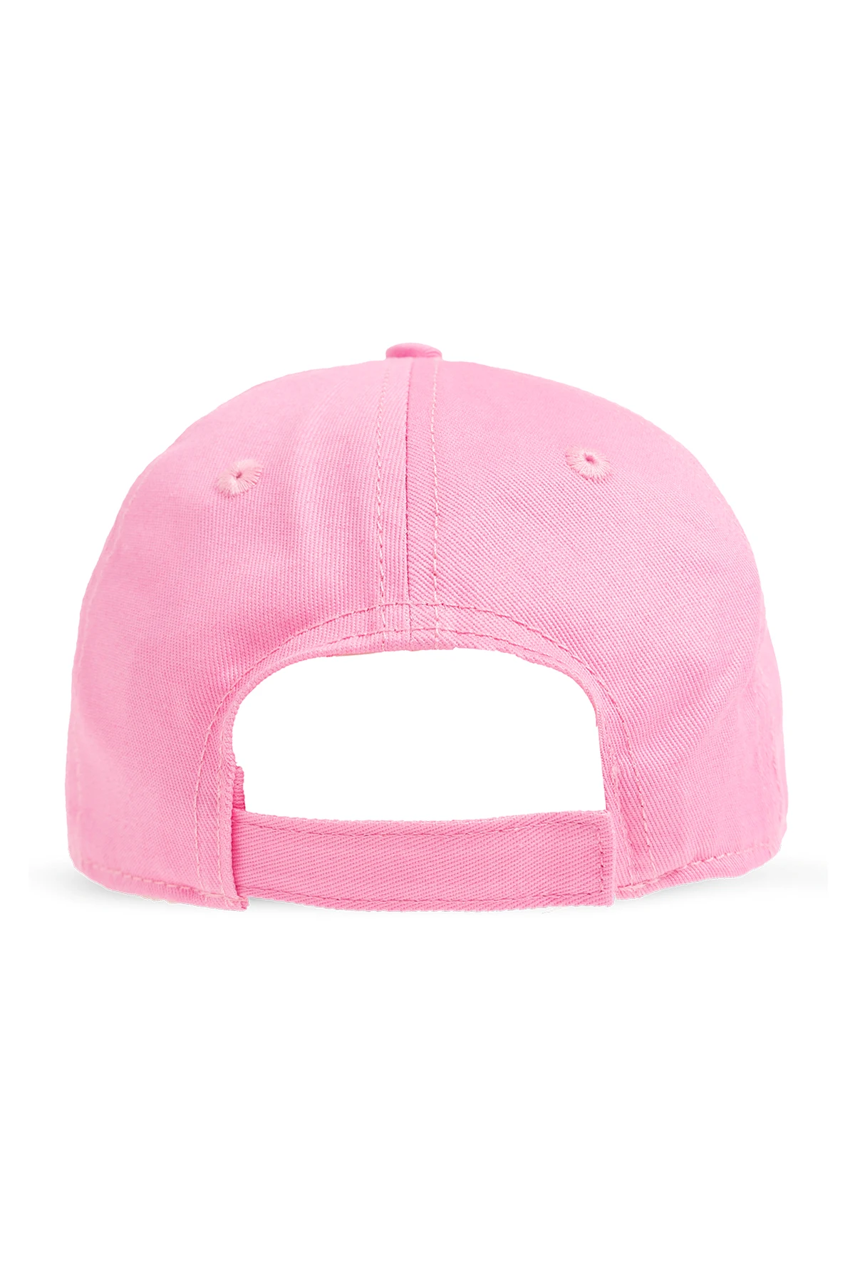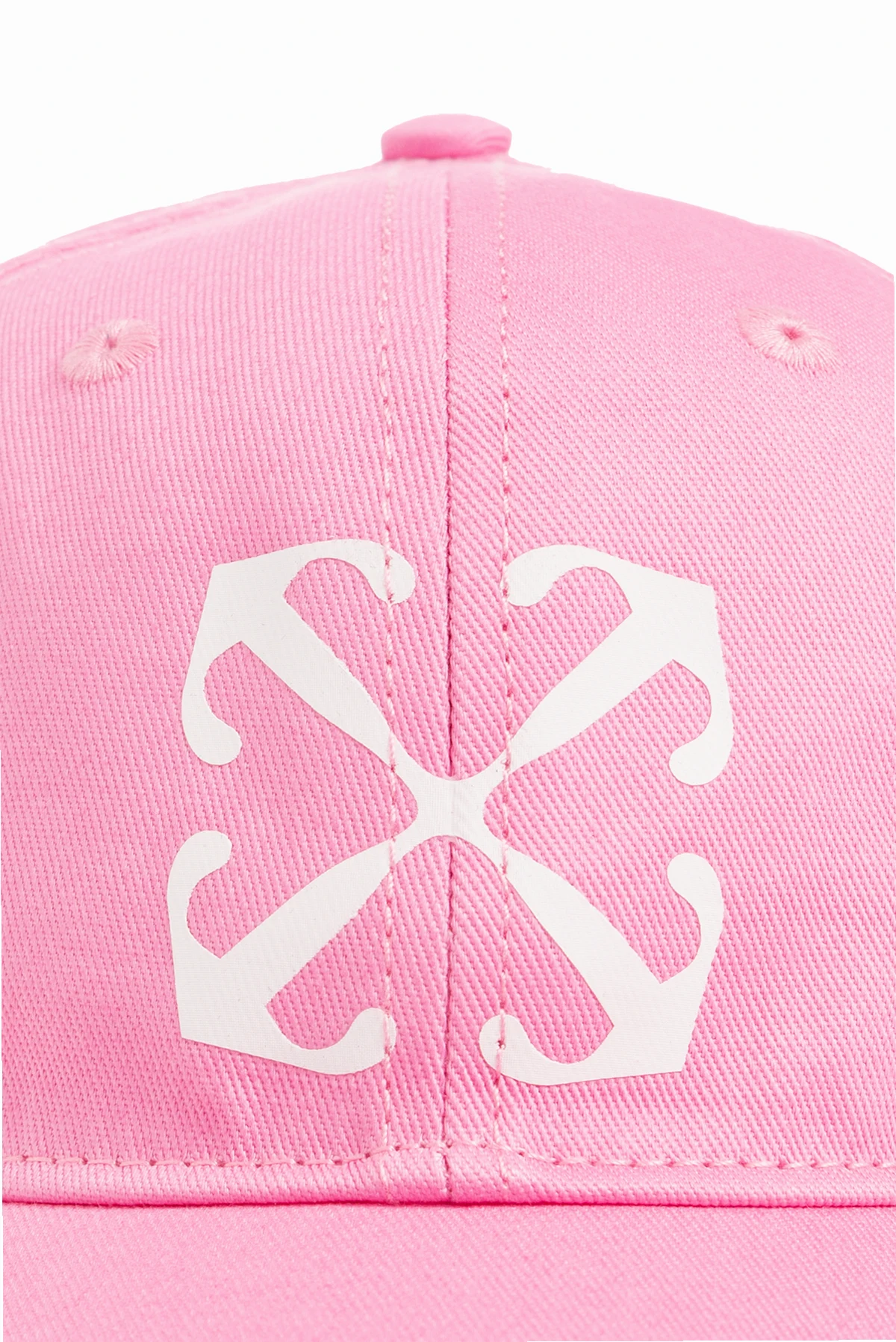 Różowa, bawełniana czapka z daszkiem Off-White Kids. Z przodu nadruk z logo w kolorze białym. Zapinana z tyłu na rzep.