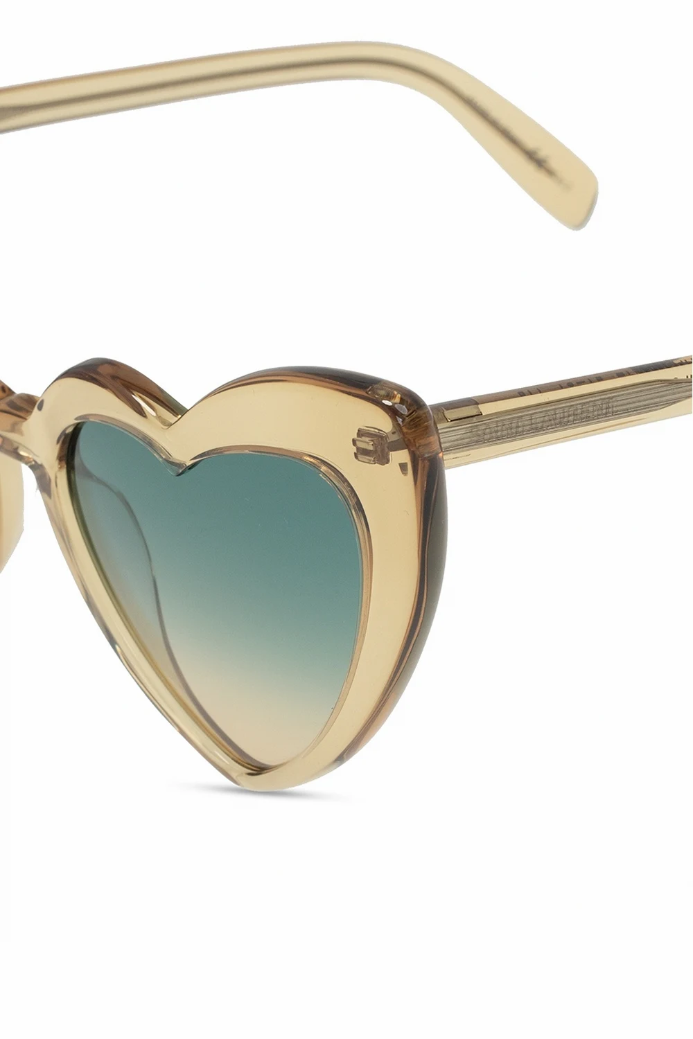 Żółte okulary przeciwsłoneczne, model 'SL 181' Saint Laurent. Ozdobione wytłoczonym logo. Zielone, certyfikowane soczewki 100% UVA/UVB.