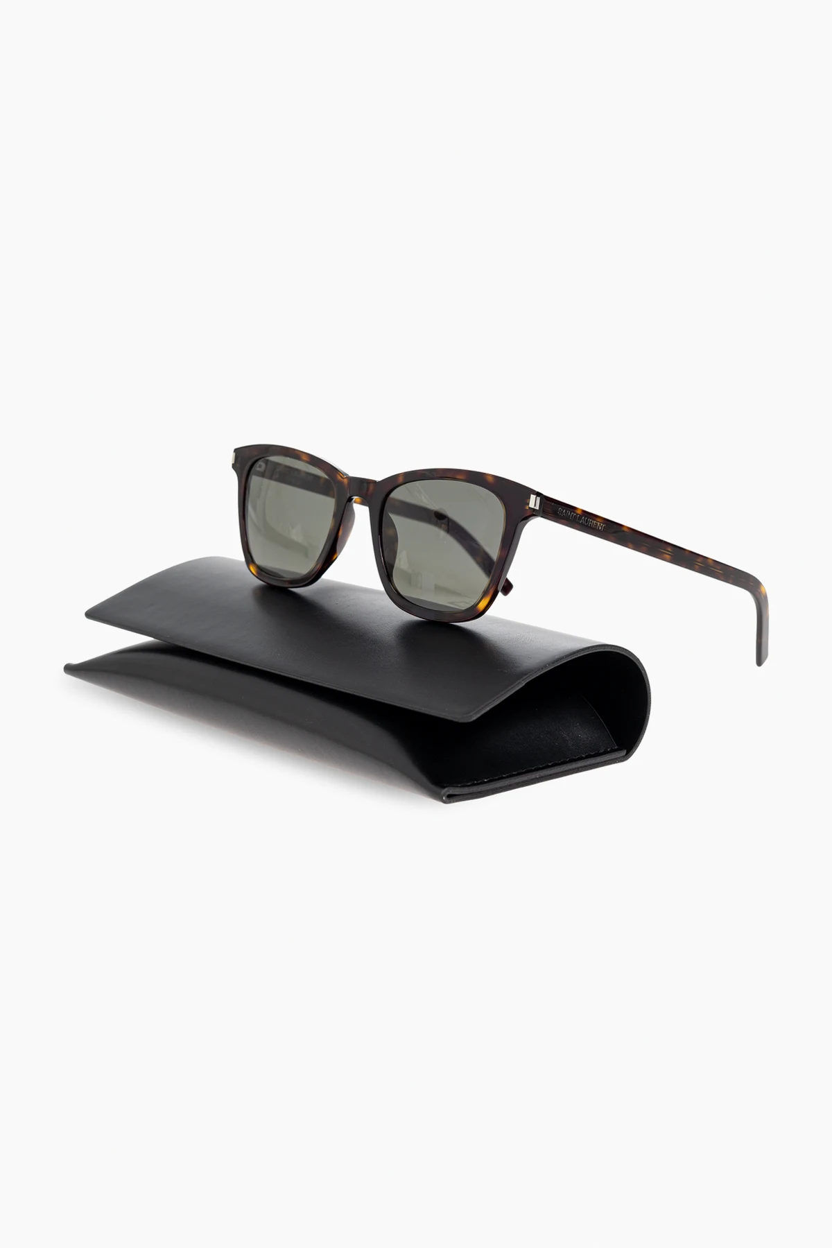 Oprawki w kolorze brązowym z charakterystycznym wzorem "tortoiseshell" są nie tylko wytrzymałe, ale również wyjątkowo lekkie, co zapewnia komfort noszenia przez cały dzień. Na zausznikach widnieje subtelny napis "SAINT LAURENT" oraz małe, metalowe logo, które podkreślają ekskluzywność tego modelu.