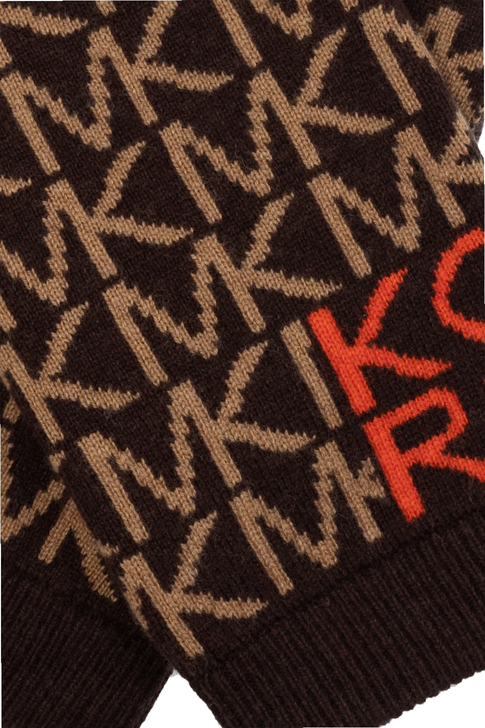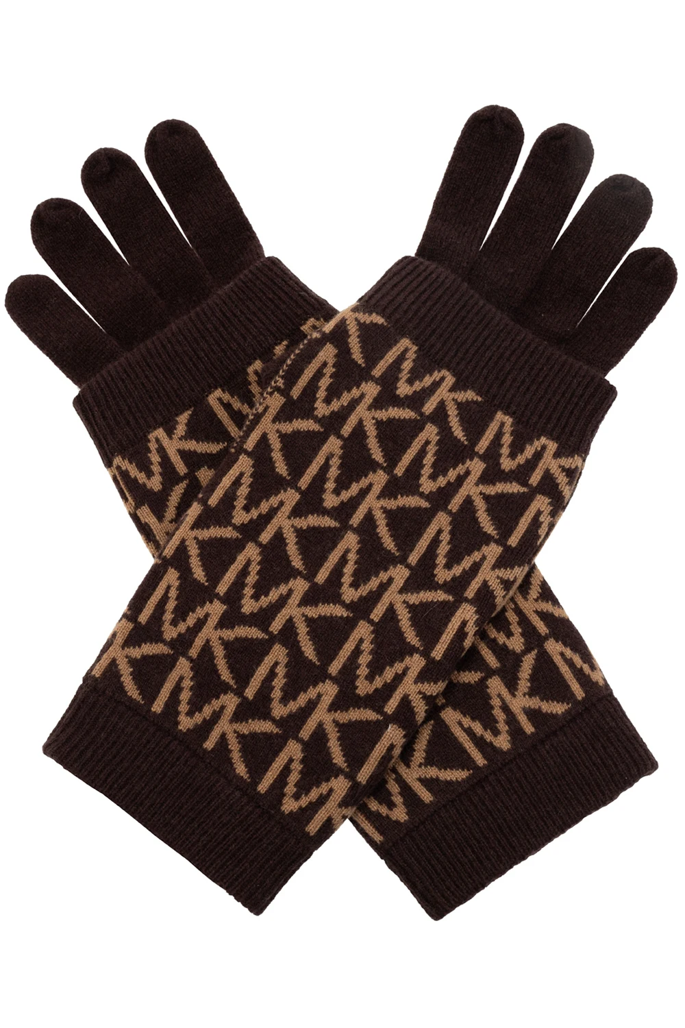 Brązowo-beżowo-pomarańczowe rękawiczki Michael Michael Kors. Ozdobione wyszytym logo. Wykończone ściągaczem.