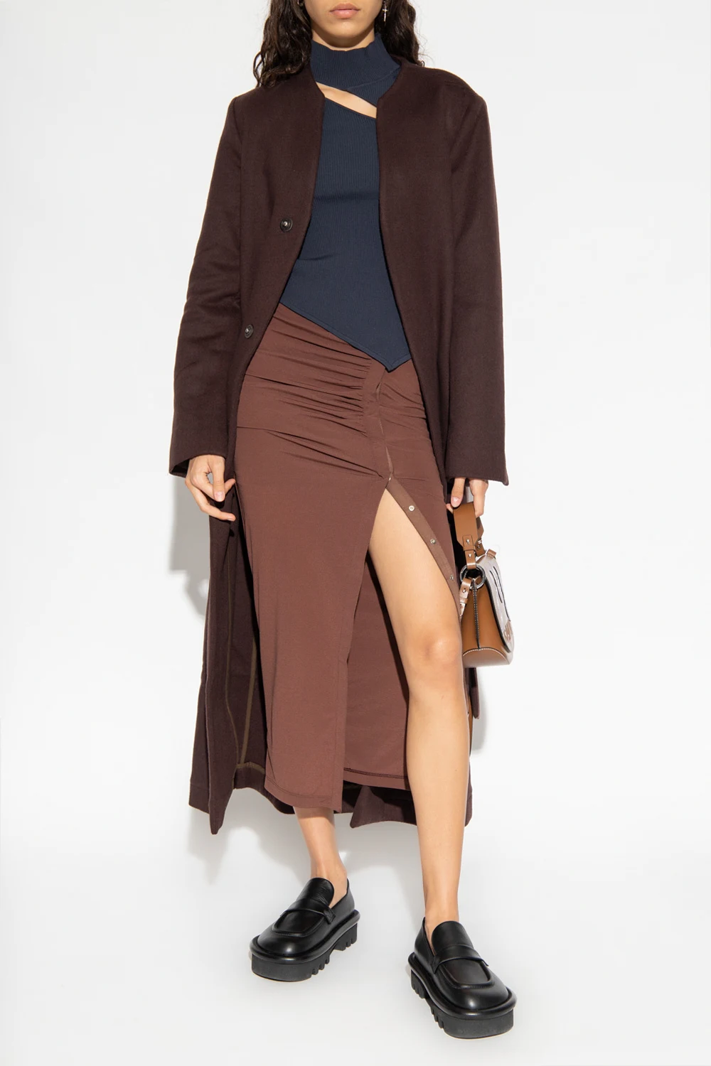 Tolu Coker x Topshop – Circular Design – Brązowa plisowana spódnica jeansowa maxi