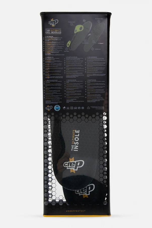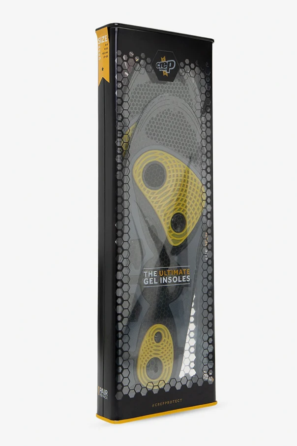 Żelowe wkładki do butów Crep. Wyprofilowany i ukształtowany projekt. Podkładka śródstopia. Pochłaniające siłę pęcherzyki żelu rozpraszają naprężenie przy uderzeniu. Umożliwiają równomiernie obciążenie.
