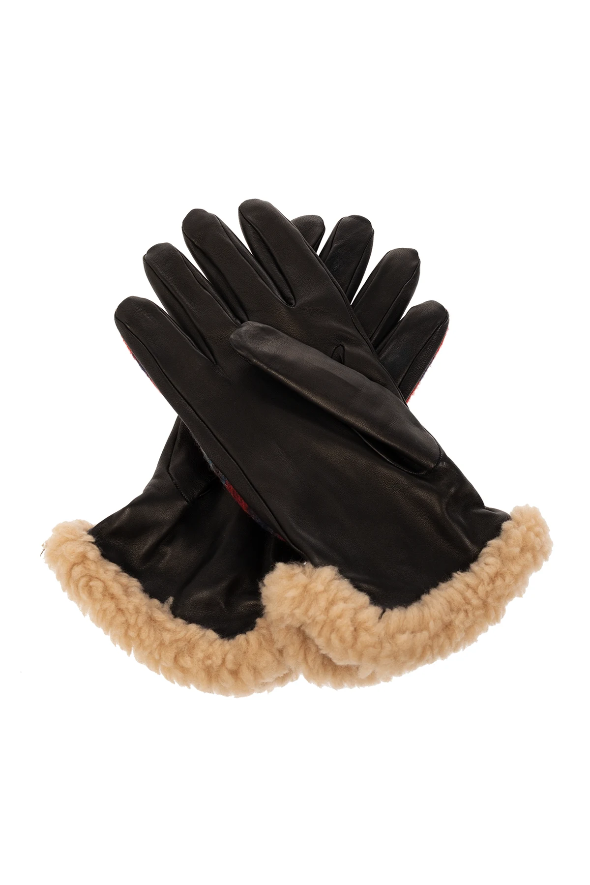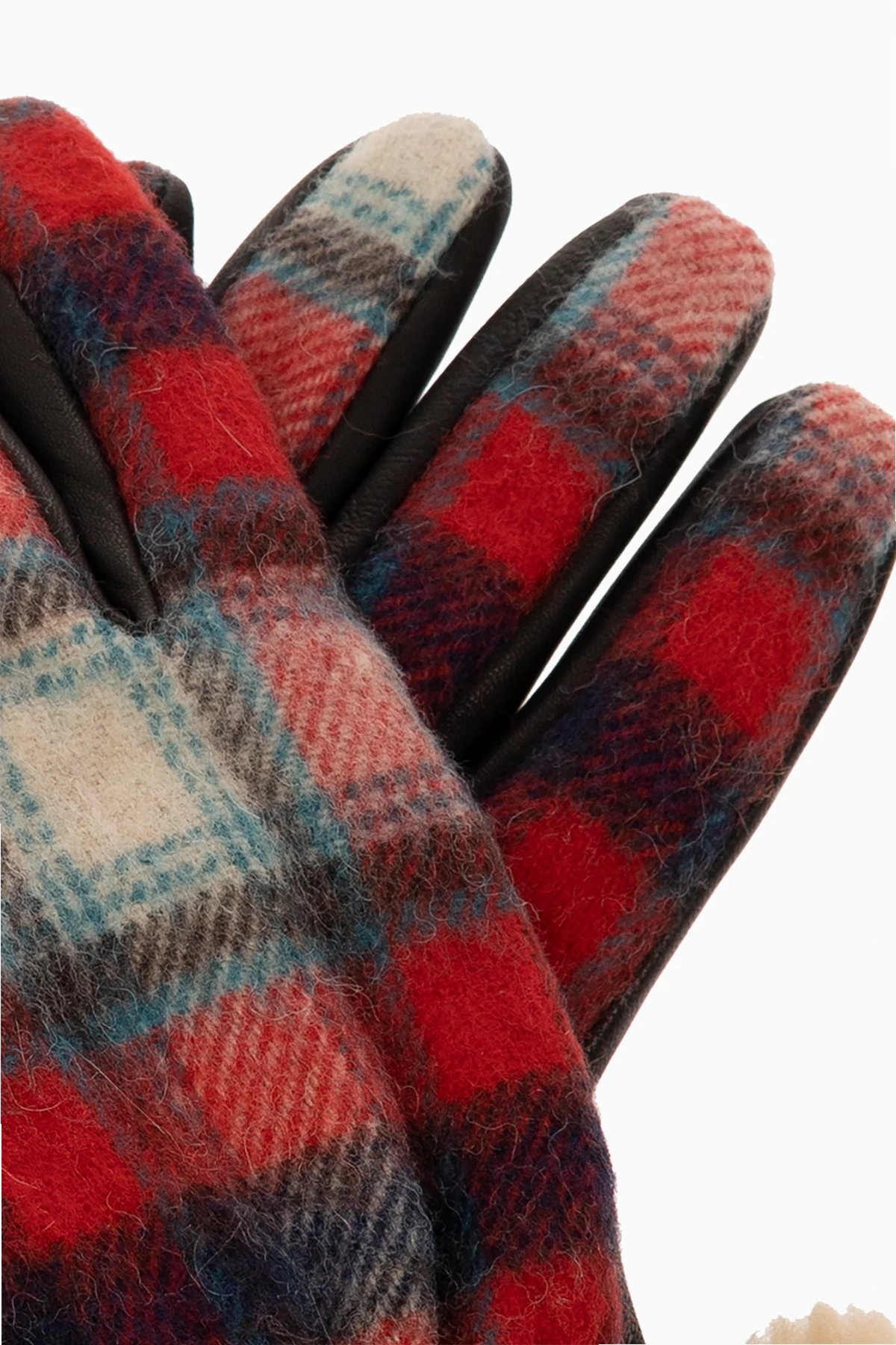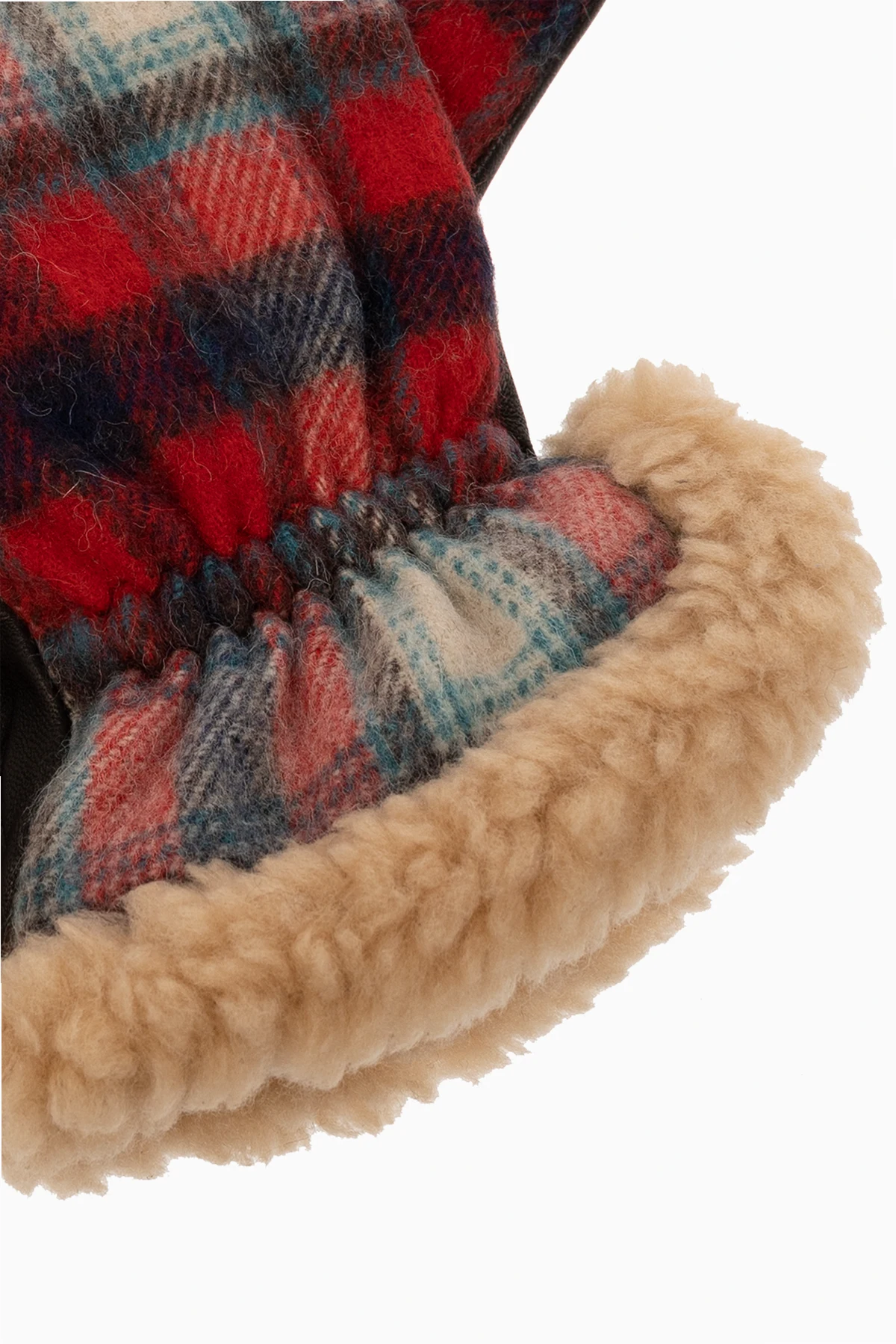 Kolorowe rękawice Dsquared2. Wykonane z wełny i skóry jagnięcej. Wykończone materiałem imitującym futro. Ozdobione wzorem w kratę.