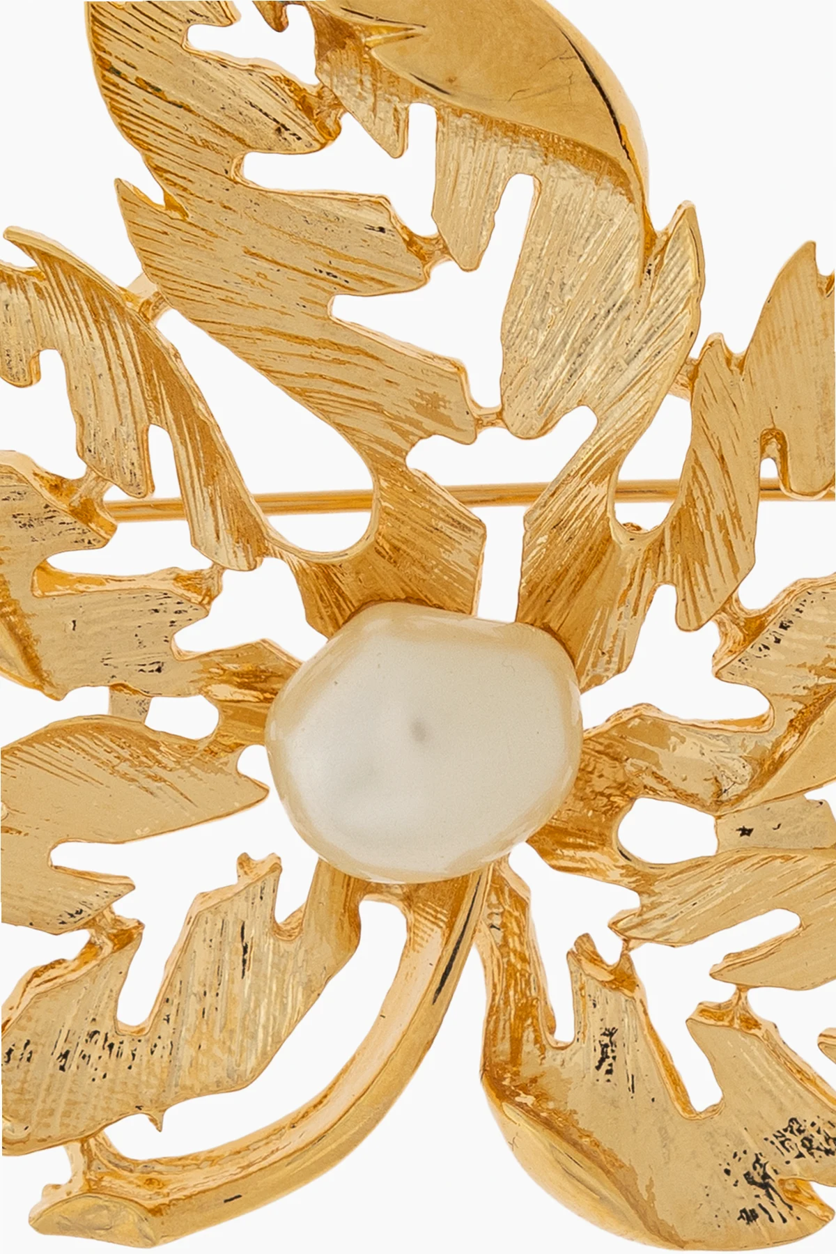 Prezentujemy Państwu mosiężną broszkę w kształcie liścia, pochodzącą z ekskluzywnej kolekcji renomowanego projektanta Dolce & Gabbana . Ta wyjątkowa ozdoba podkreśla nieskazitelną elegancję i luksus, będąc jednocześnie subtelnym akcentem każdej stylizacji.