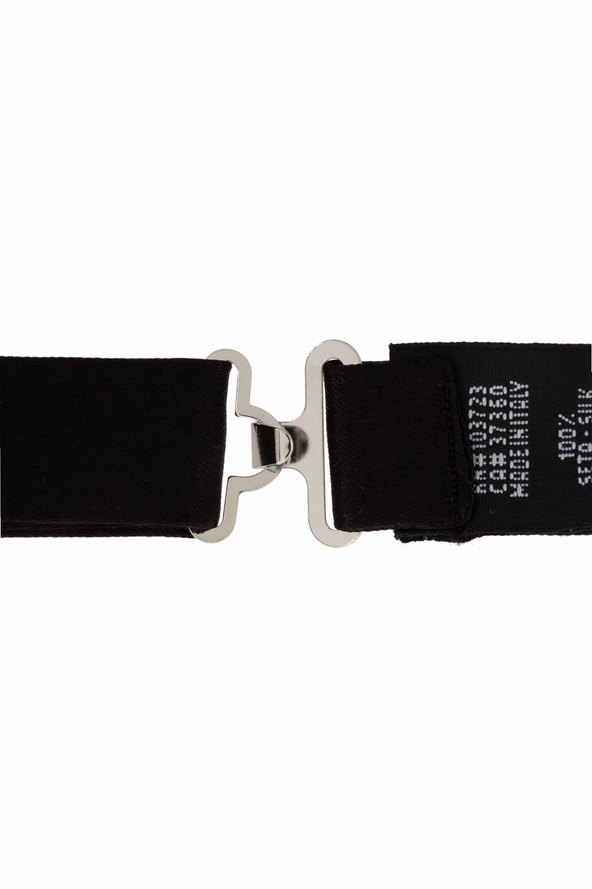 Czarny kolor oraz klasyczny kształt z szerokimi skrzydłami i węższym środkowym segmentem, nadają temu dodatkowi uniwersalny charakter, idealnie komponujący się z formalnym strojem męskim. Zintegrowany mechanizm zapięcia z metalową klamrą i regulowanym paskiem pozwala na idealne dopasowanie do obwodu szyi, zapewniając komfort i pewność noszenia przez cały czas trwania wydarzeń takich jak bankiety, wesela czy inne uroczystości.
