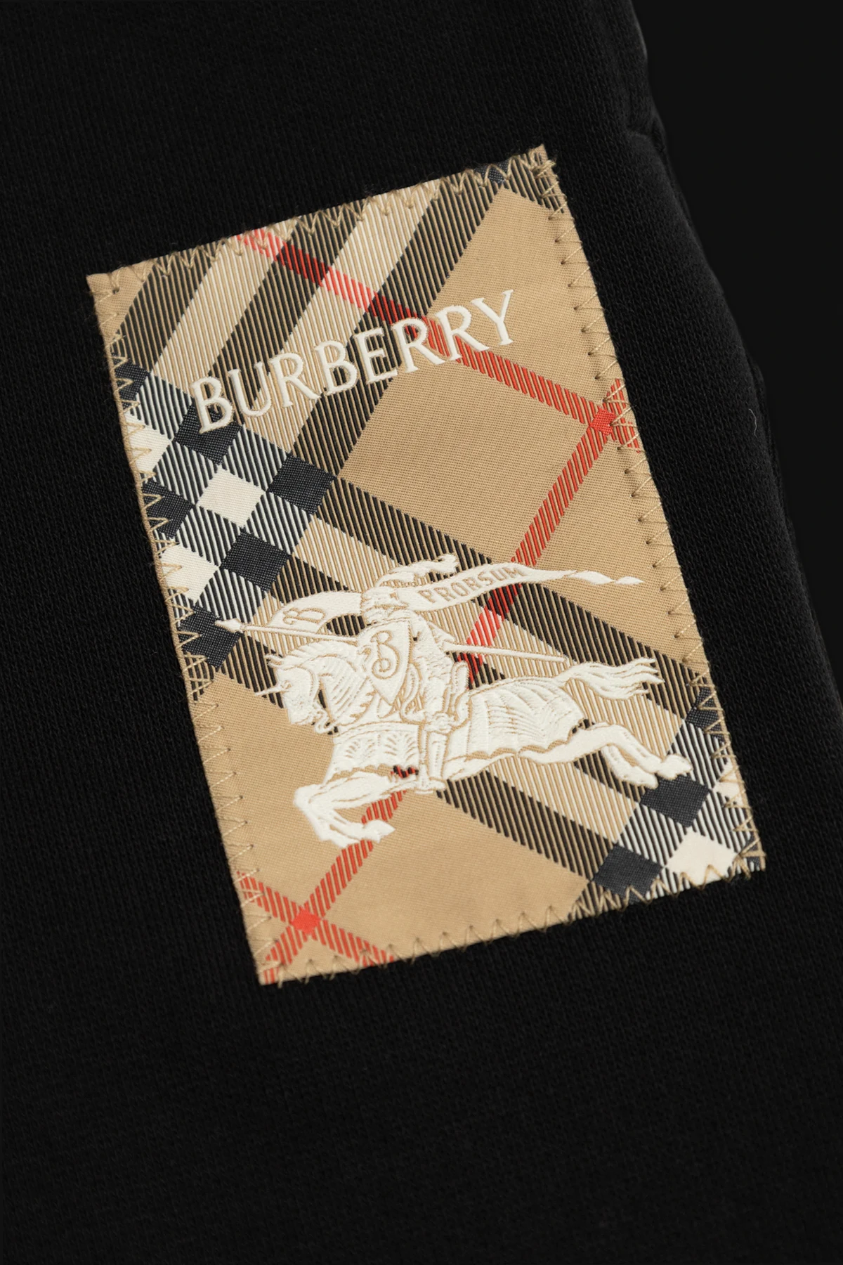 Klasyczny, prosty krój z elastyczną talią oraz mankietami na końcach nogawek zapewnia swobodę ruchu. Dodatkowo, spodnie zdobi naszywka z charakterystycznym wzorem w kratę marki Burberry oraz białym logo z rycerzem na koniu, podkreślając ich ekskluzywność.
